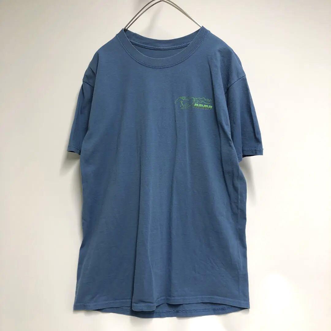 Hanes マスタング カスタムカープリント Tシャツ くすみブルー メンズM