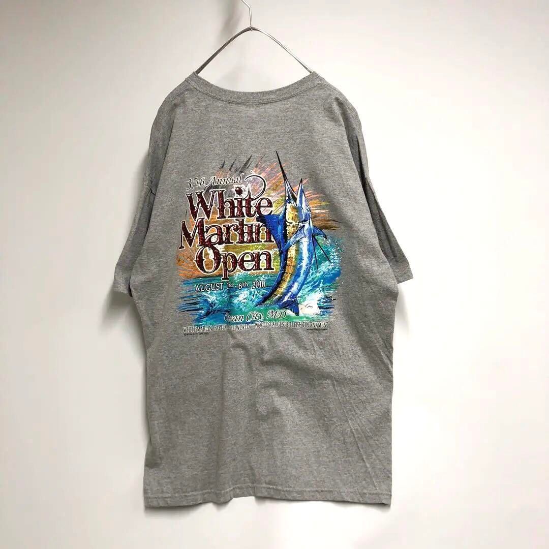 GILDAN フィッシングTシャツ カジキマグロ 釣り グレー メンズXL.