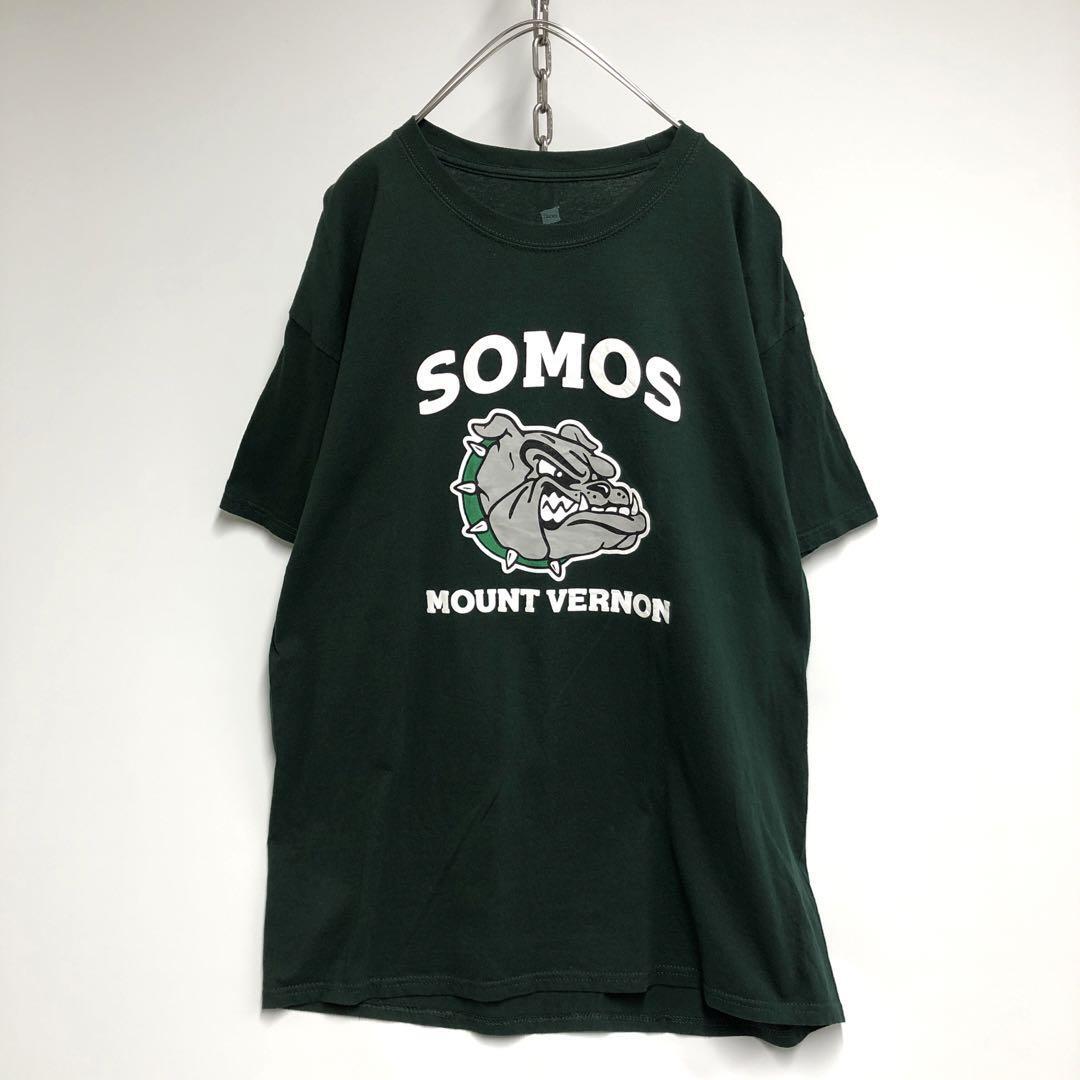 Hanes カレッジロゴ アニマル ブルドッグ 半袖Tシャツ グリーンメンズXL