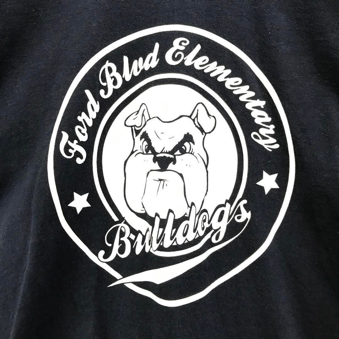 GILDAN アニマル柄ブルドッグ 半袖Tシャツ メンズS相当 紺