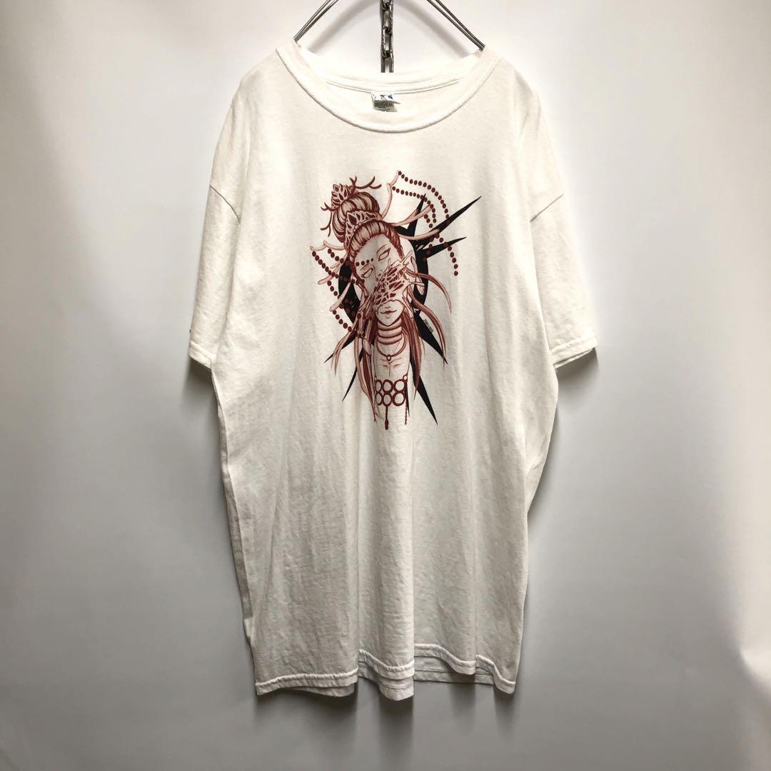 GILDAN 人物画 イラスト 半袖Tシャツ ホワイト メンズL