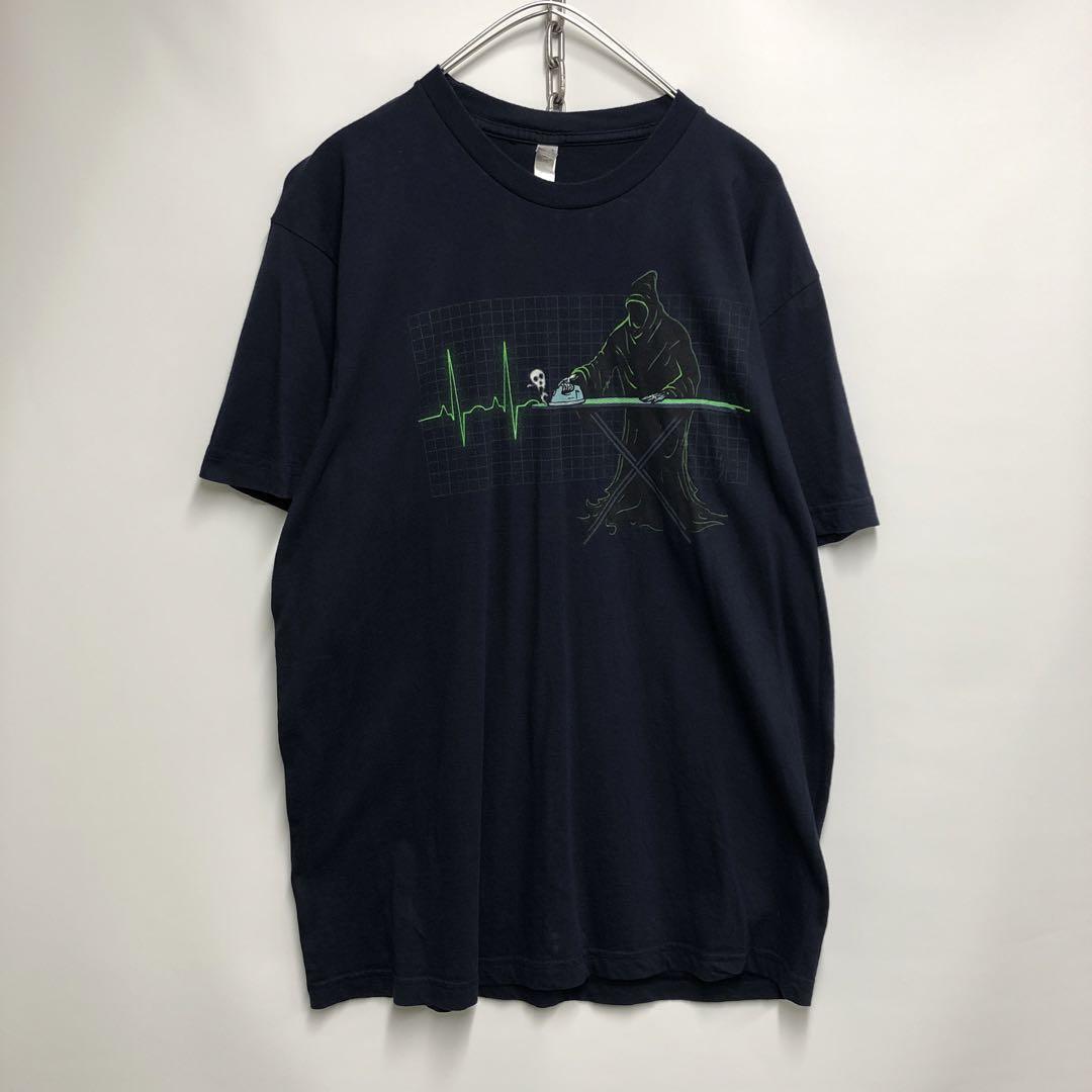 キャラT Grim Reaper アイロン 半袖Tシャツ ネイビー メンズL