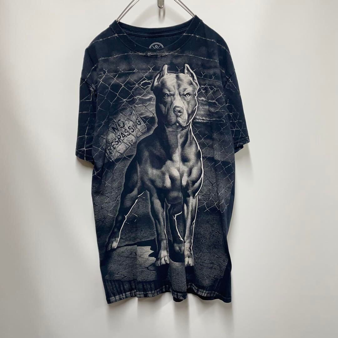ピットブル アニマル柄 犬 半袖Tシャツ ブラック メンズM
