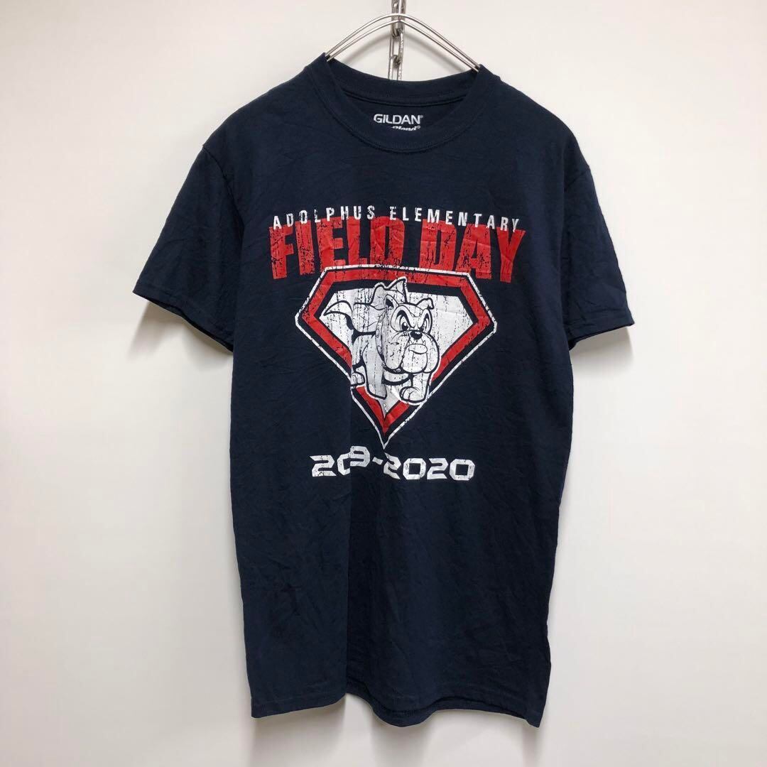 GILDAN アニマル柄 ブルドッグ 半袖Tシャツ ネイビー メンズS
