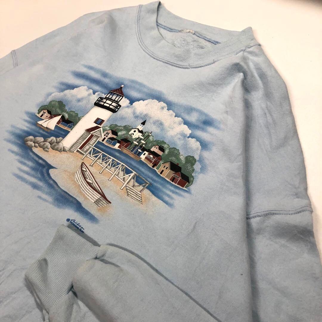 【USA製】ヴィンテージスウェット 90's 風景画 海 メンズL相当