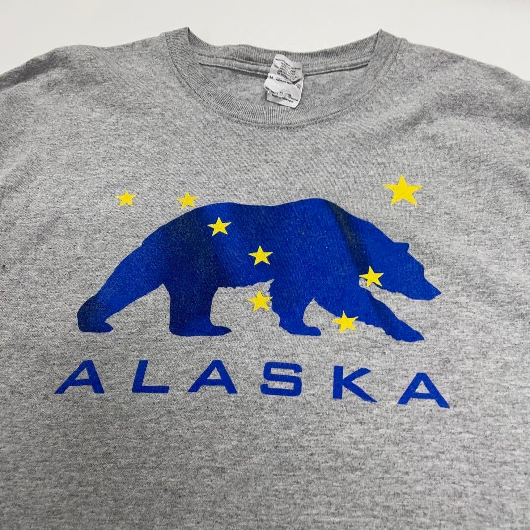 GILDAN アラスカ アニマル柄 くま 半袖Tシャツ グレー メンズM