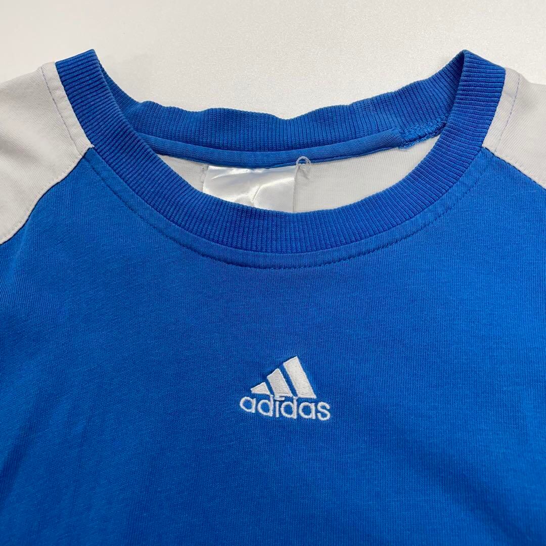 adidas センターロゴ刺繍 半袖Tシャツ ブルー メンズXL相当