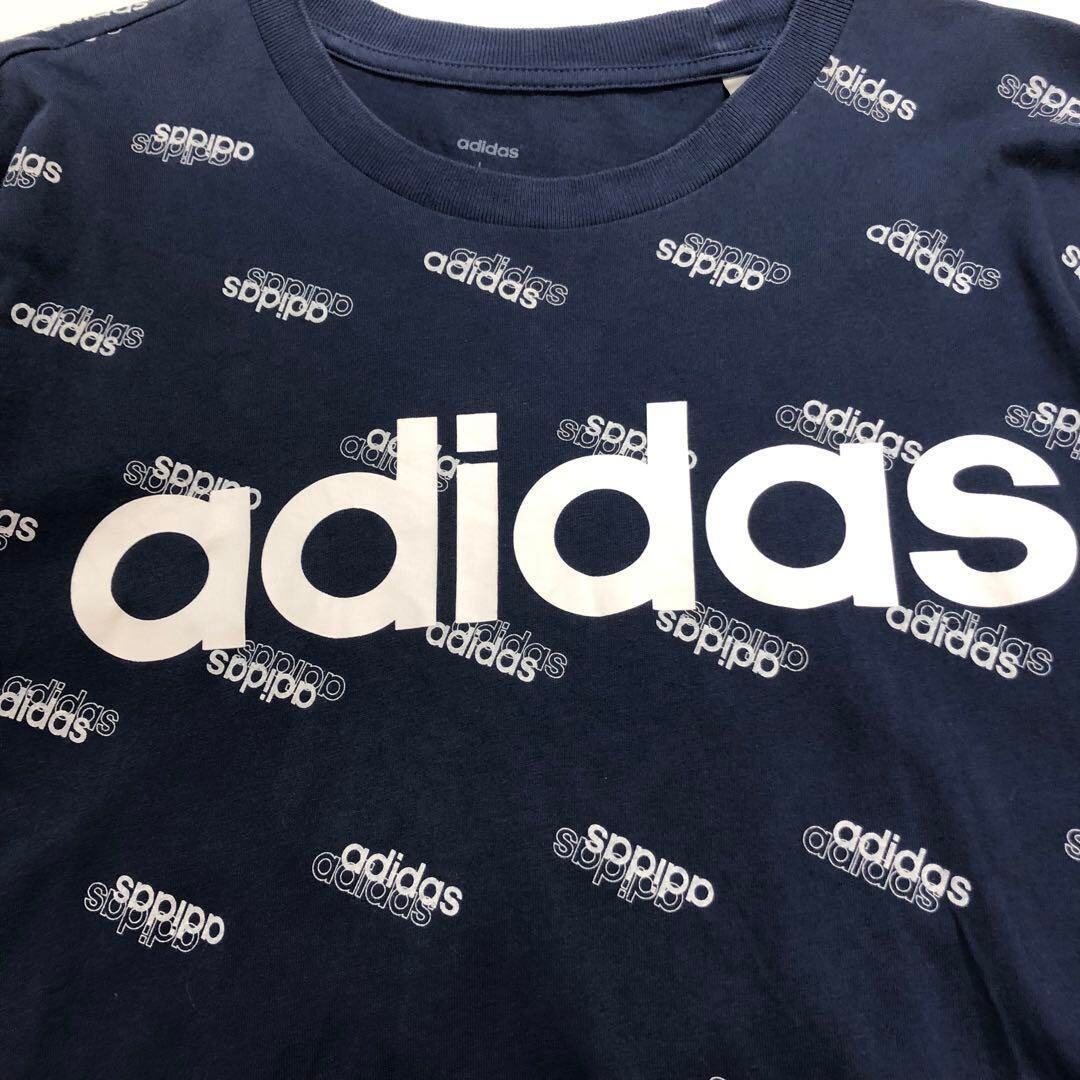adidas 総柄 半袖Tシャツ フェードネイビー メンズ2XL