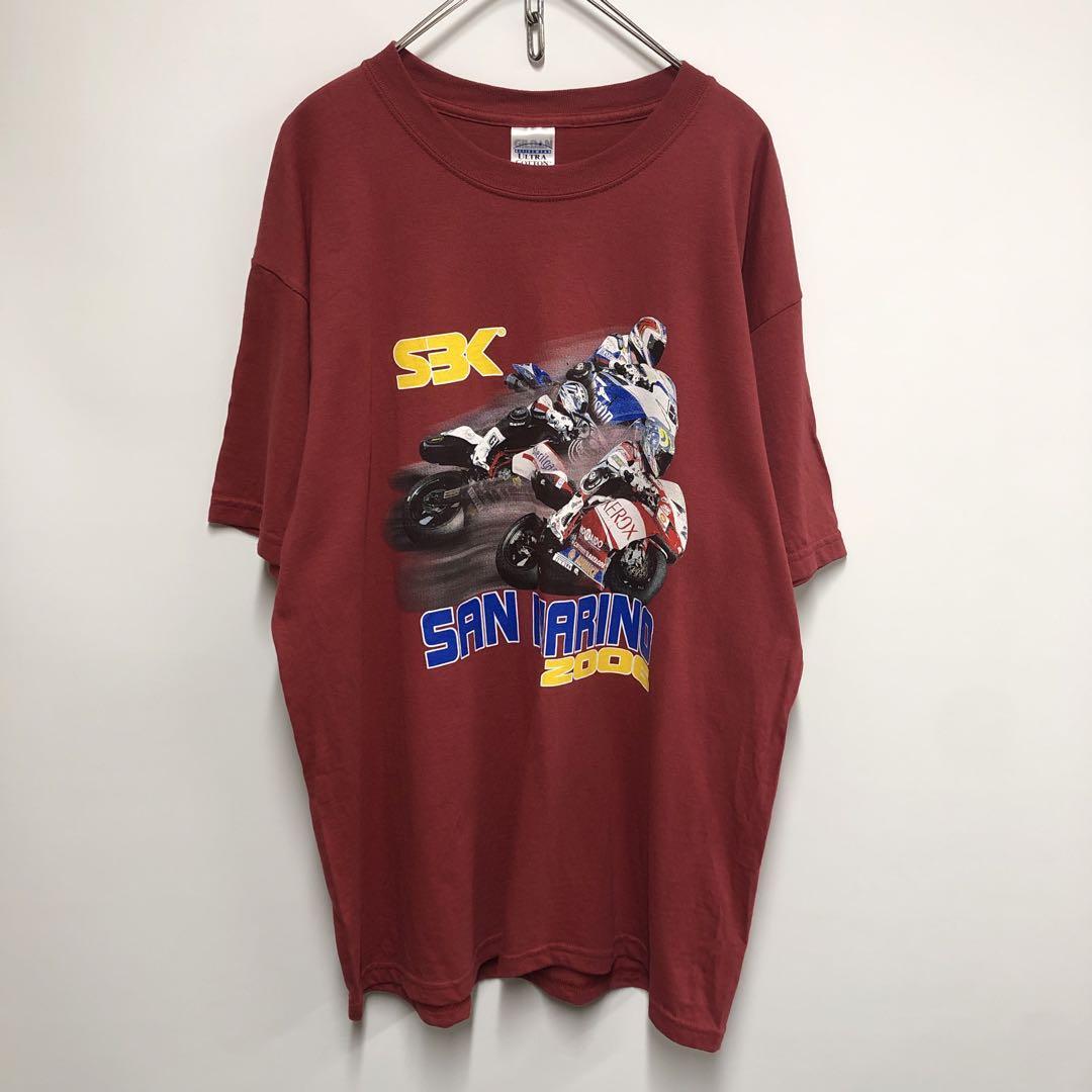 GILDAN レーシングTシャツ バイク ボルドー メンズL