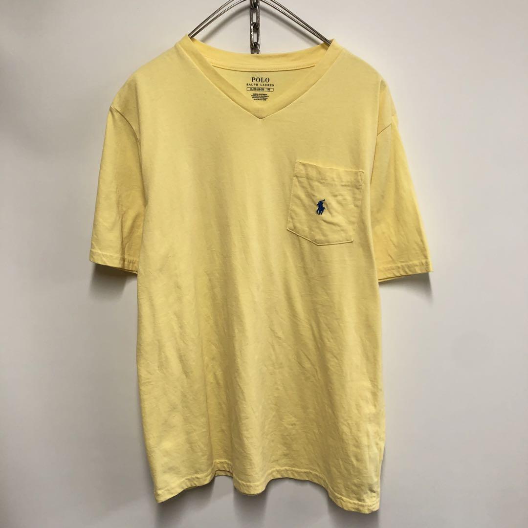 【美品】ポロラルフローレン 刺繍ロゴ水色 半袖Tシャツ イエロー メンズXL
