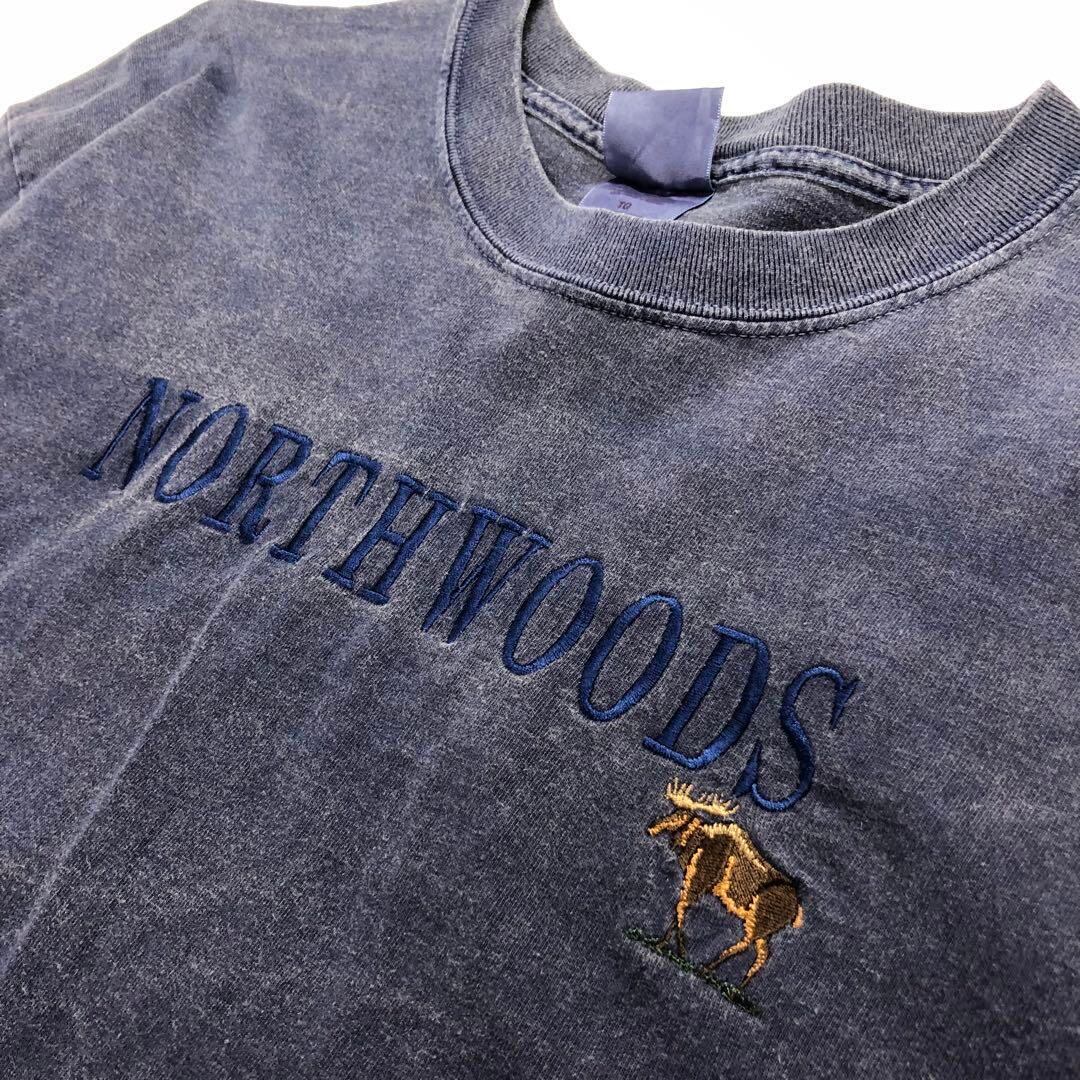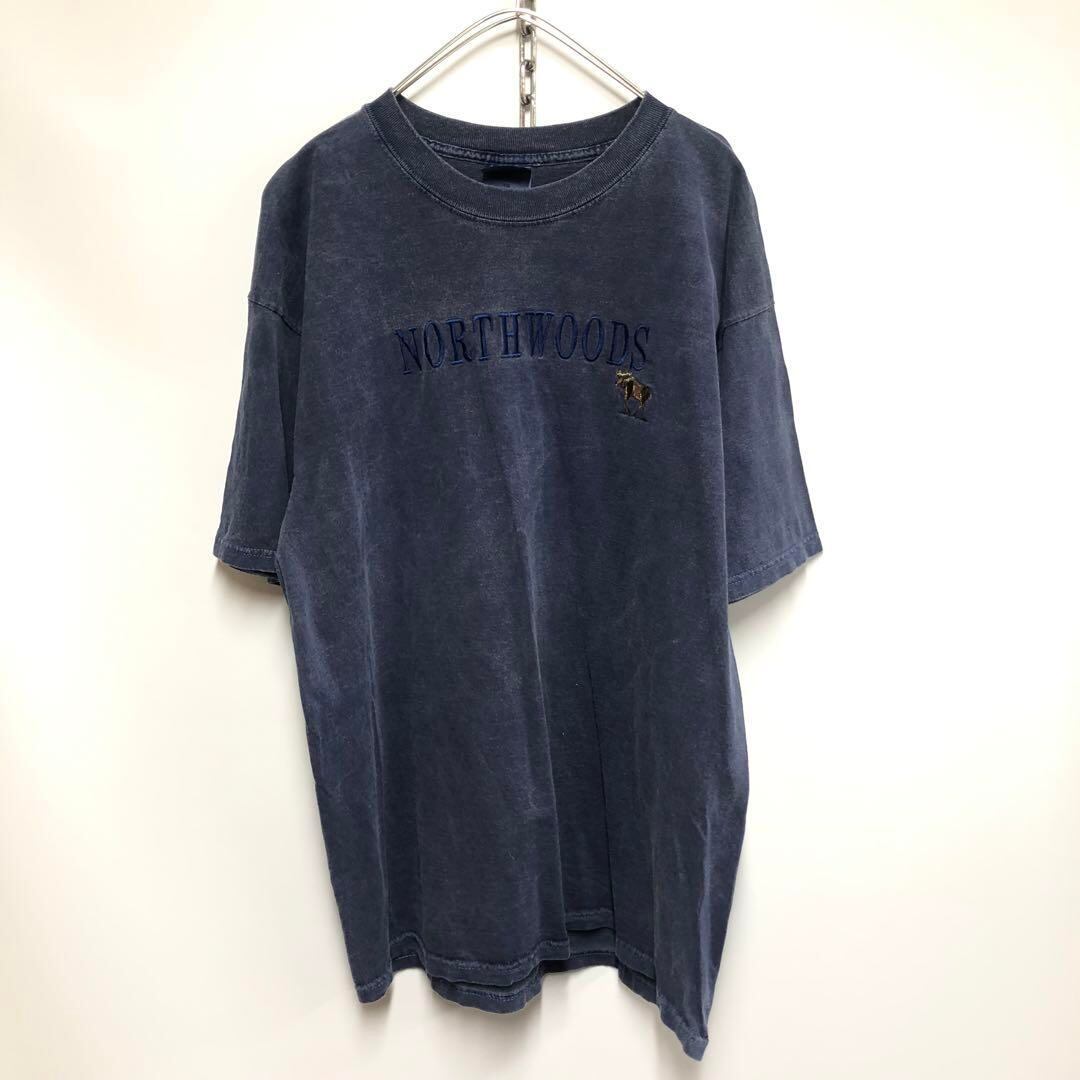 GILDAN アニマル 刺繍ロゴ 半袖Tシャツ ネイビー メンズXL