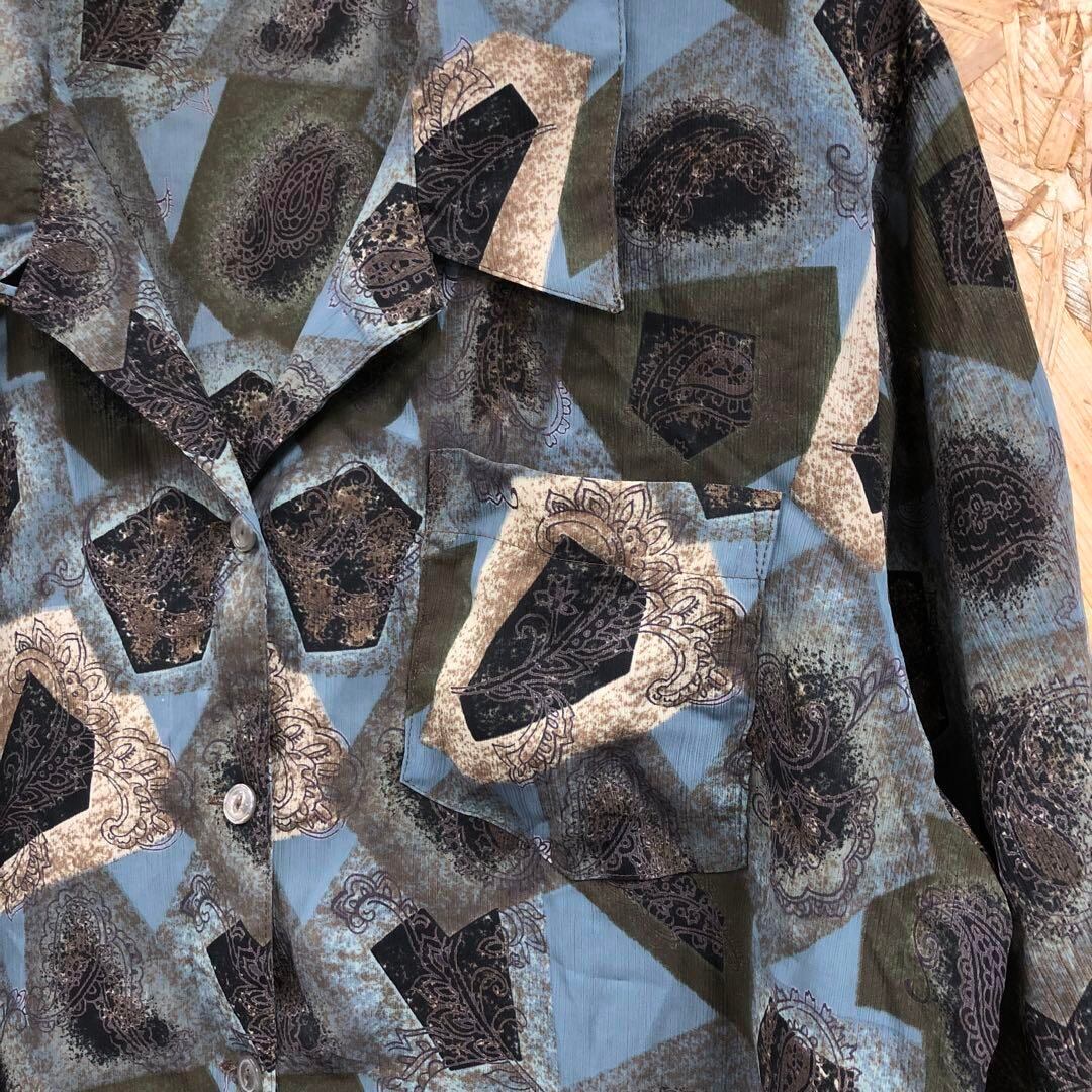 総柄 ヴィンテージシャツ 半袖 肩パッド付 レディース 深緑 f2