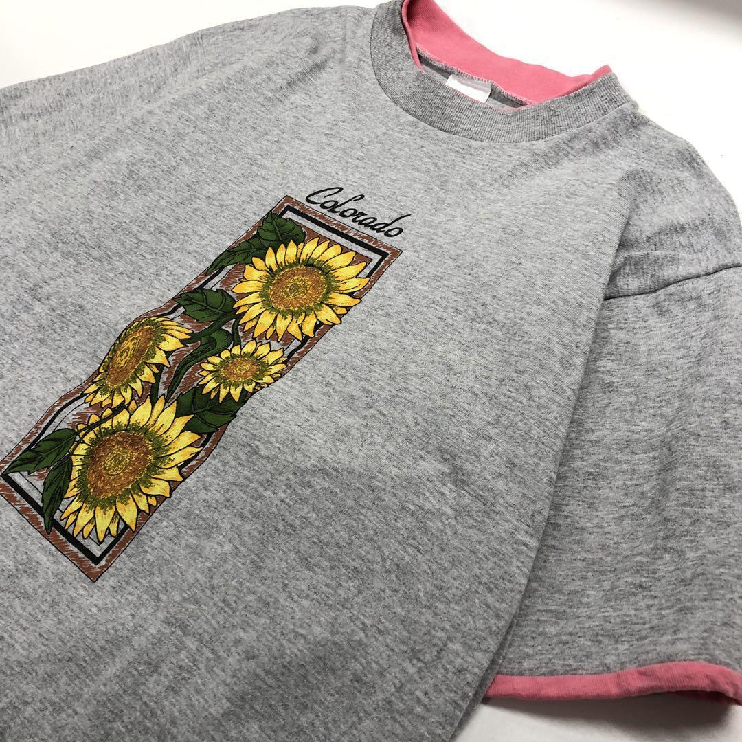 SMILE ヒマワリ 花柄 半袖Tシャツ USA製 グレー メンズL