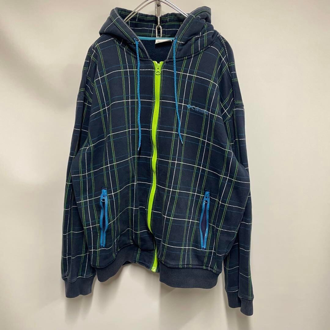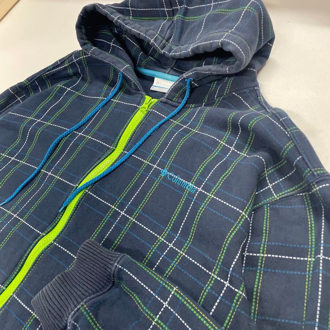 Columbia パーカー チェック柄 ネイビー メンズL
