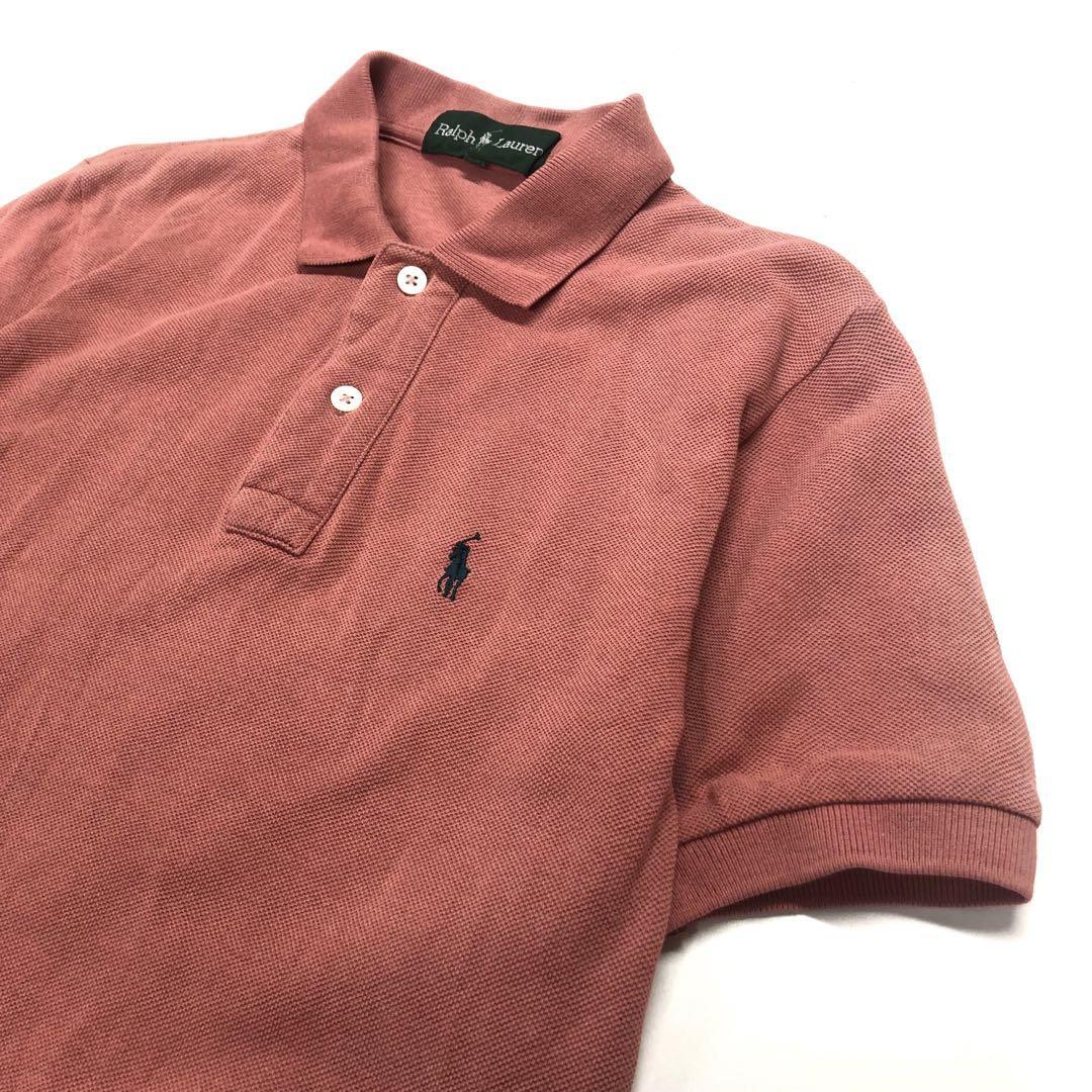 ラルフローレン ポロシャツ ロゴグリーン メンズLピンク