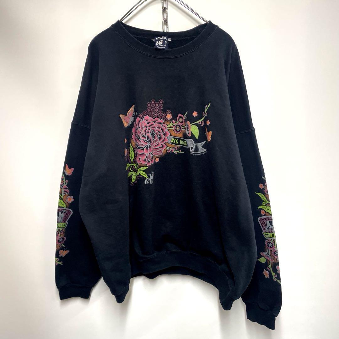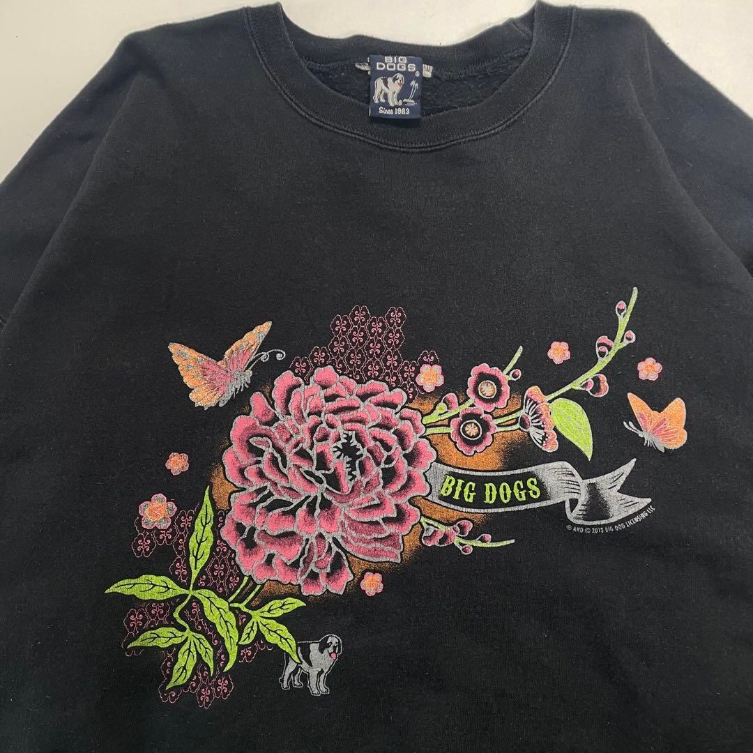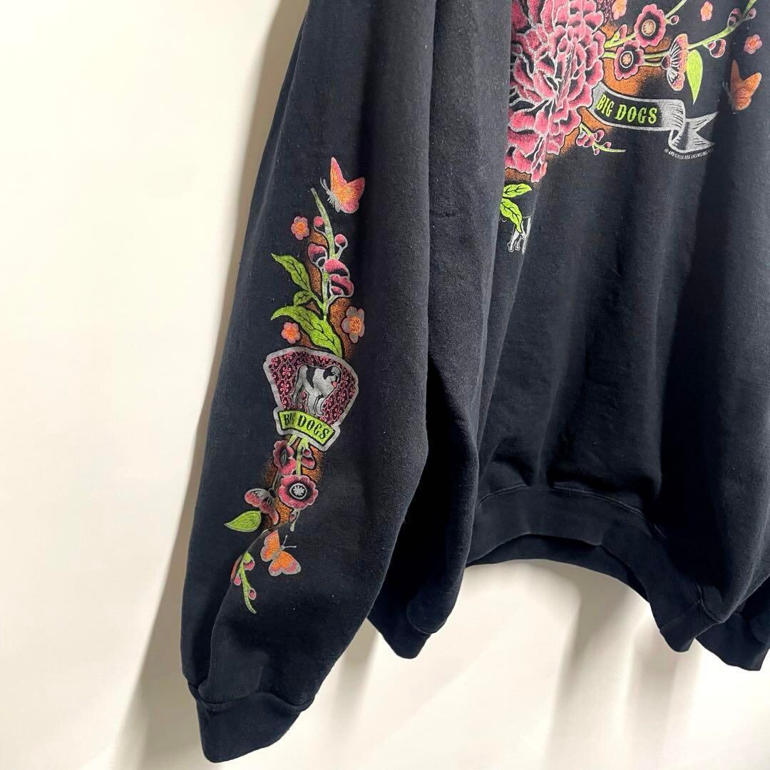 BIG DOGS アニマル 犬 花柄 スリーブロゴ スウェット ブラック XL