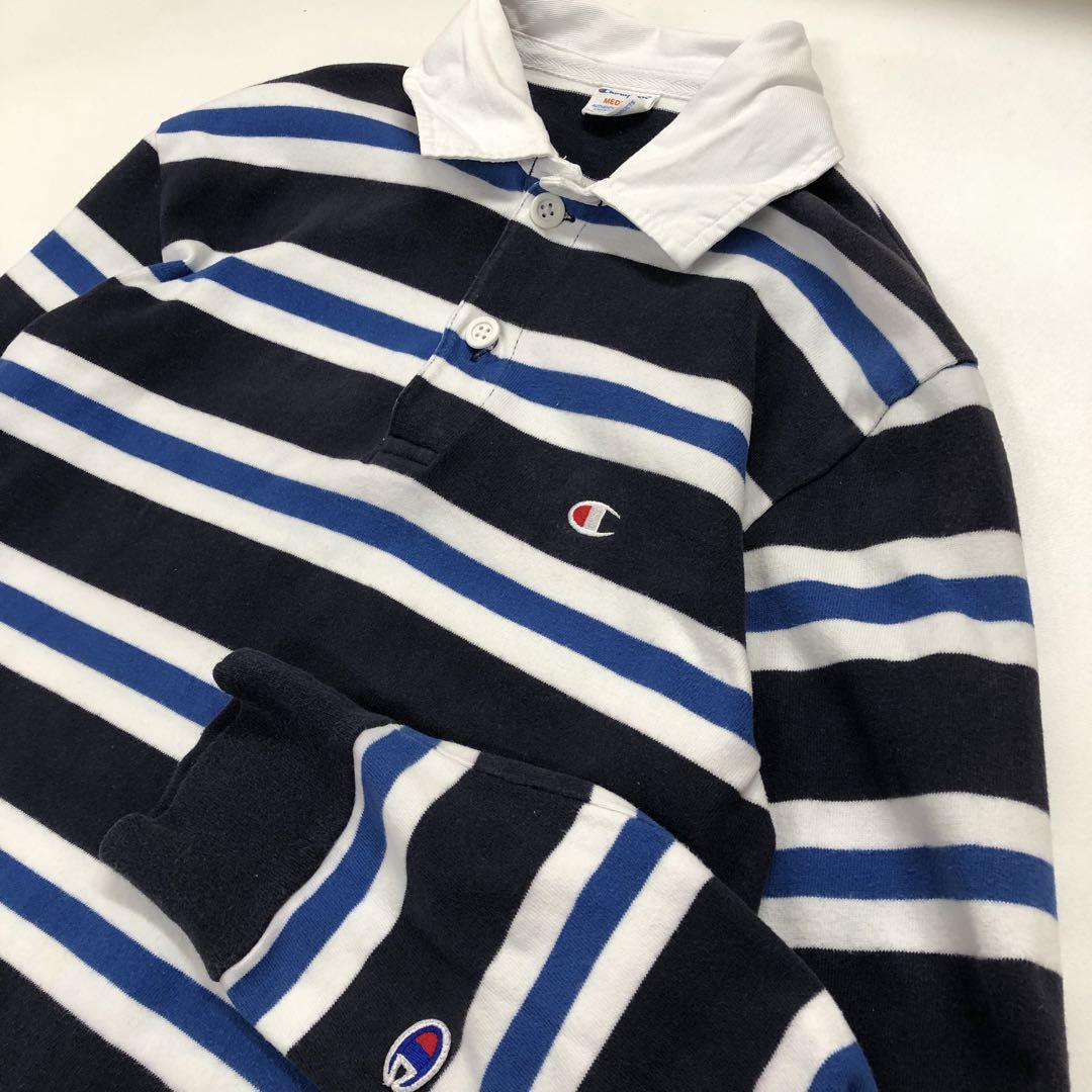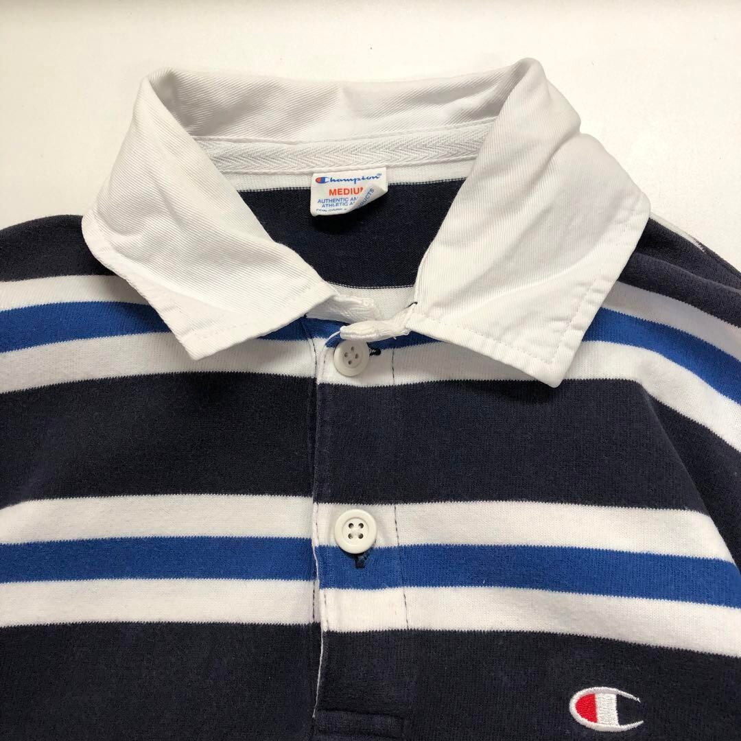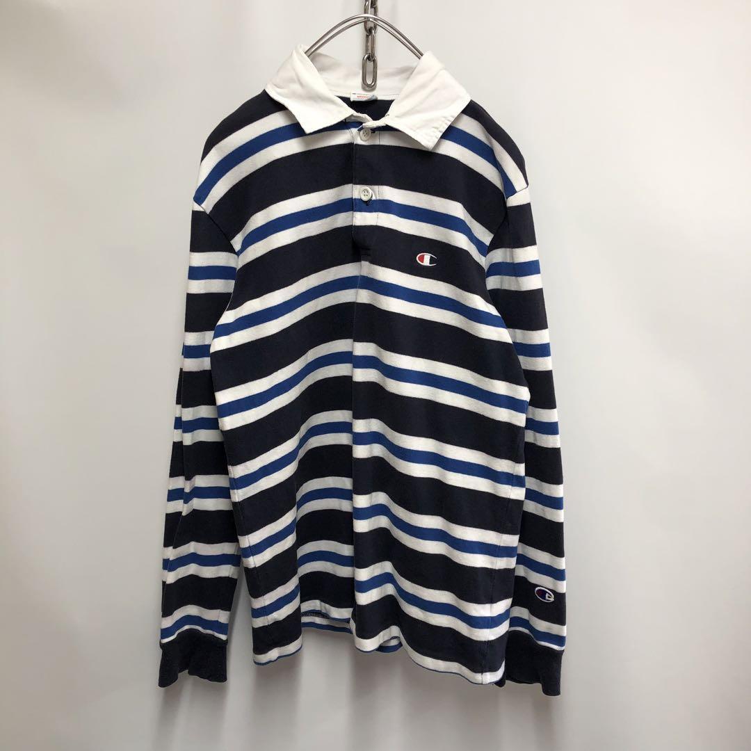 Champion ラガーシャツ 長袖ポロシャツ ボーダー ネイビー メンズM