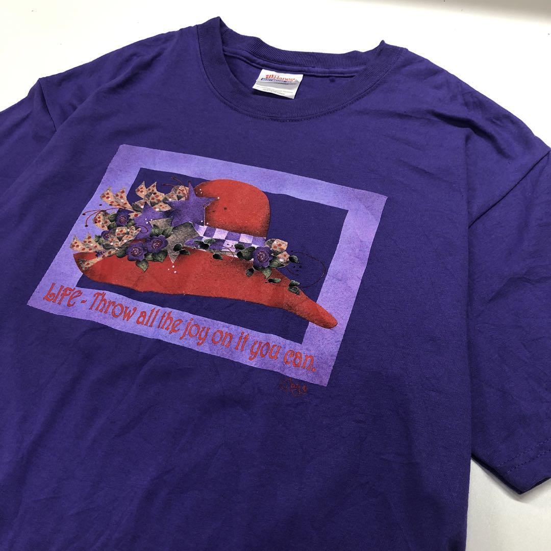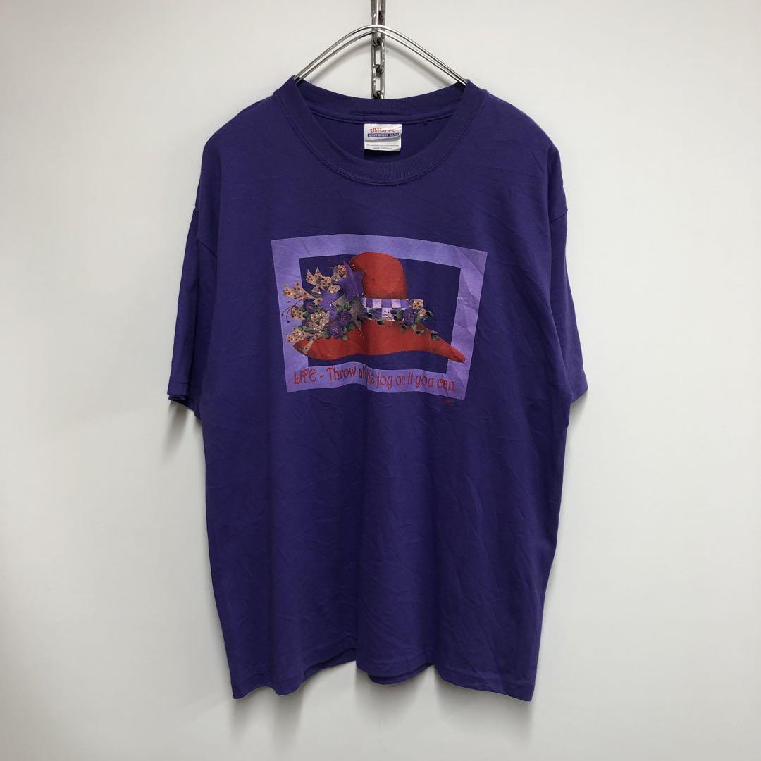 Hanes 半袖 Tシャツ プリント パープル メンズM