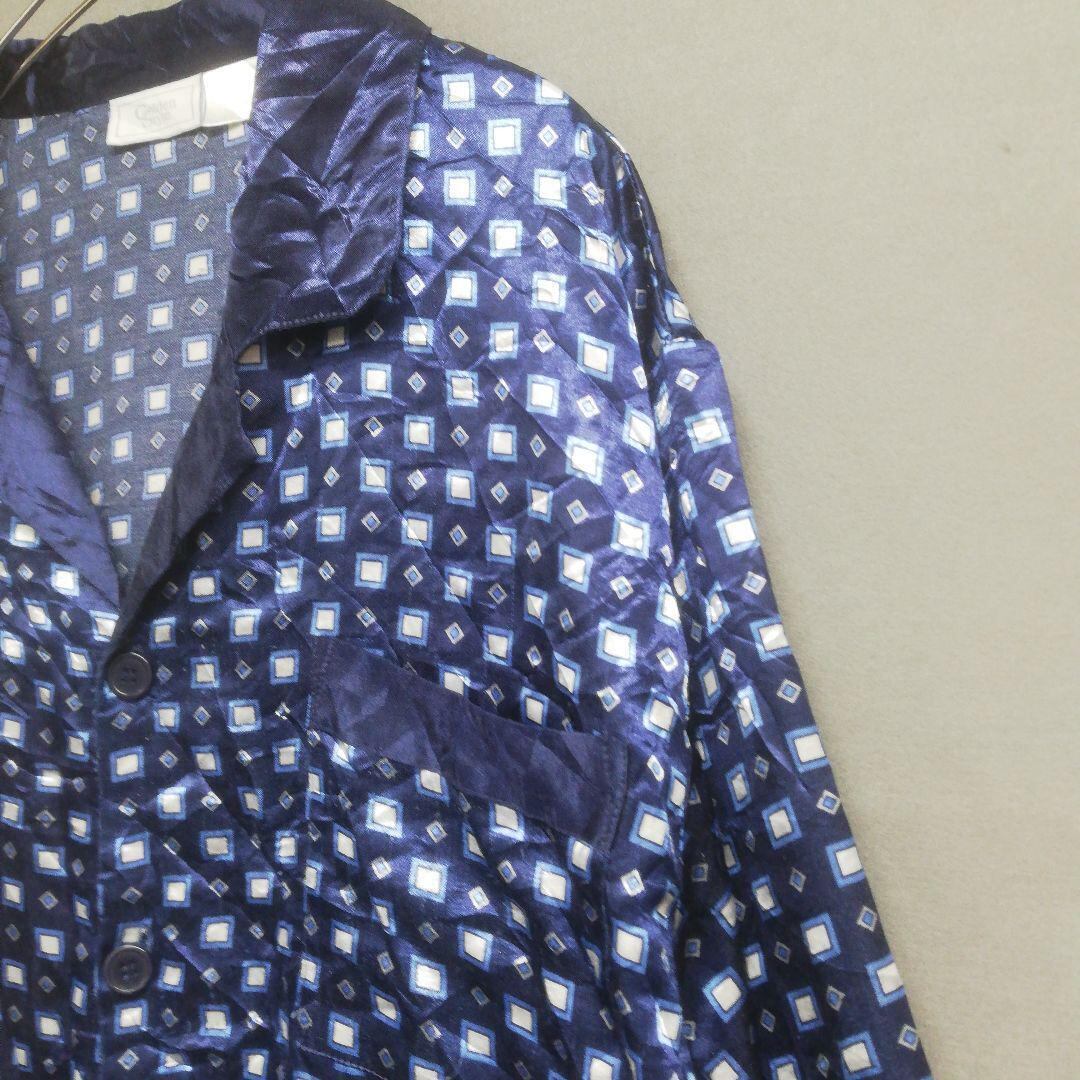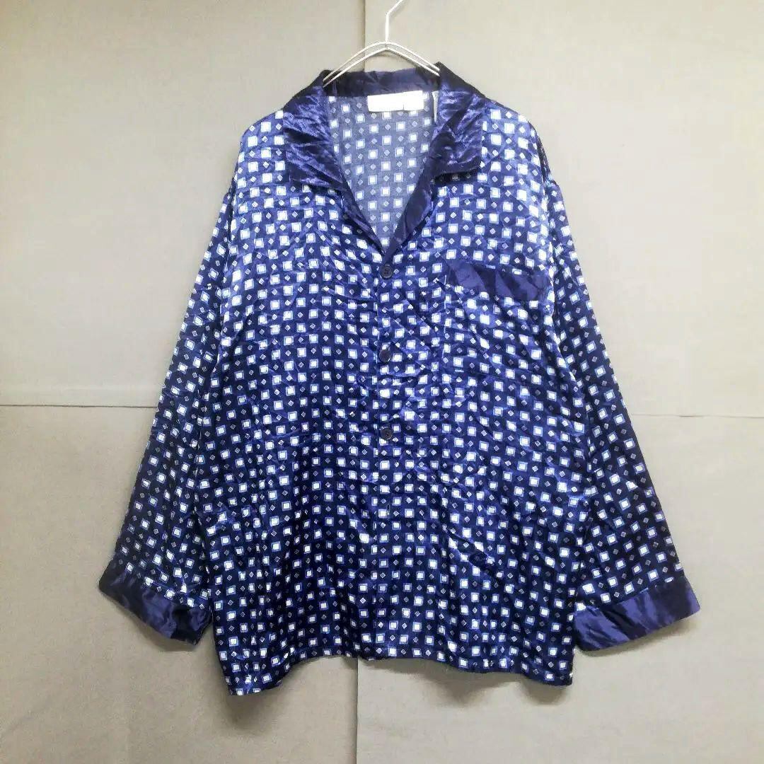 パジャマシャツ ユーロヴィンテージ80s 長袖 紺 光沢 メンズ2XL相当