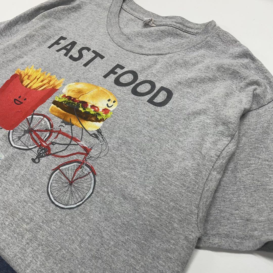 ハンバーガー ポテト スケボー 自転車 半袖Tシャツ グレー メンズL