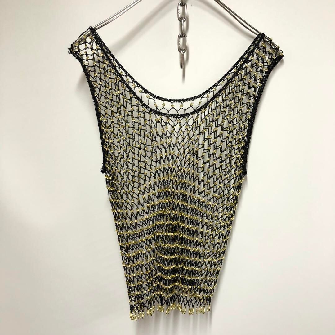 ビーズ タンクトップ ブラック ゴールド レディースF