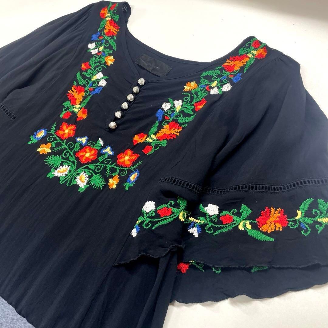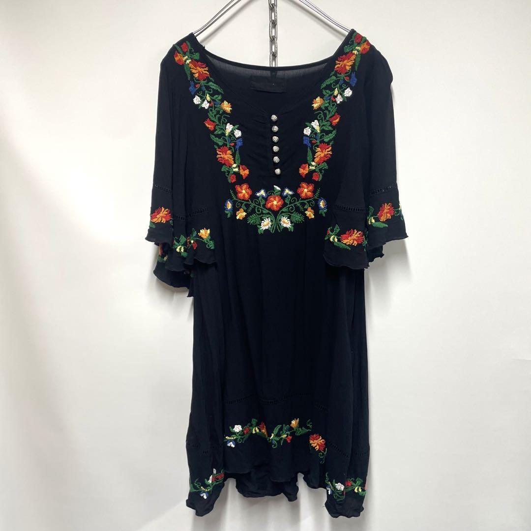 JEANASIS 花柄刺繍 ワンピース ブラック レディースF