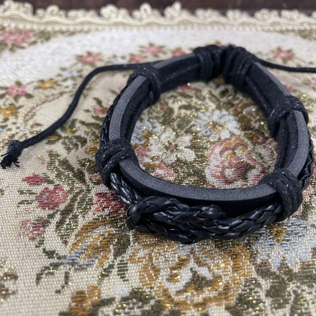 【新品未使用】ブラックレザー ブレスレット 男女兼用④