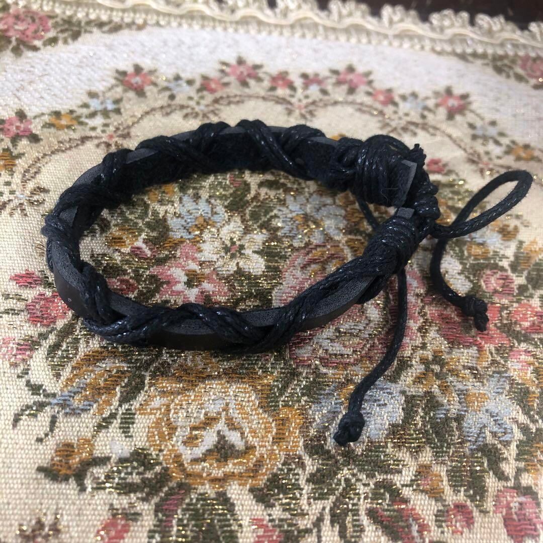 【新品未使用】ブラックレザー ブレスレット 男女兼用④