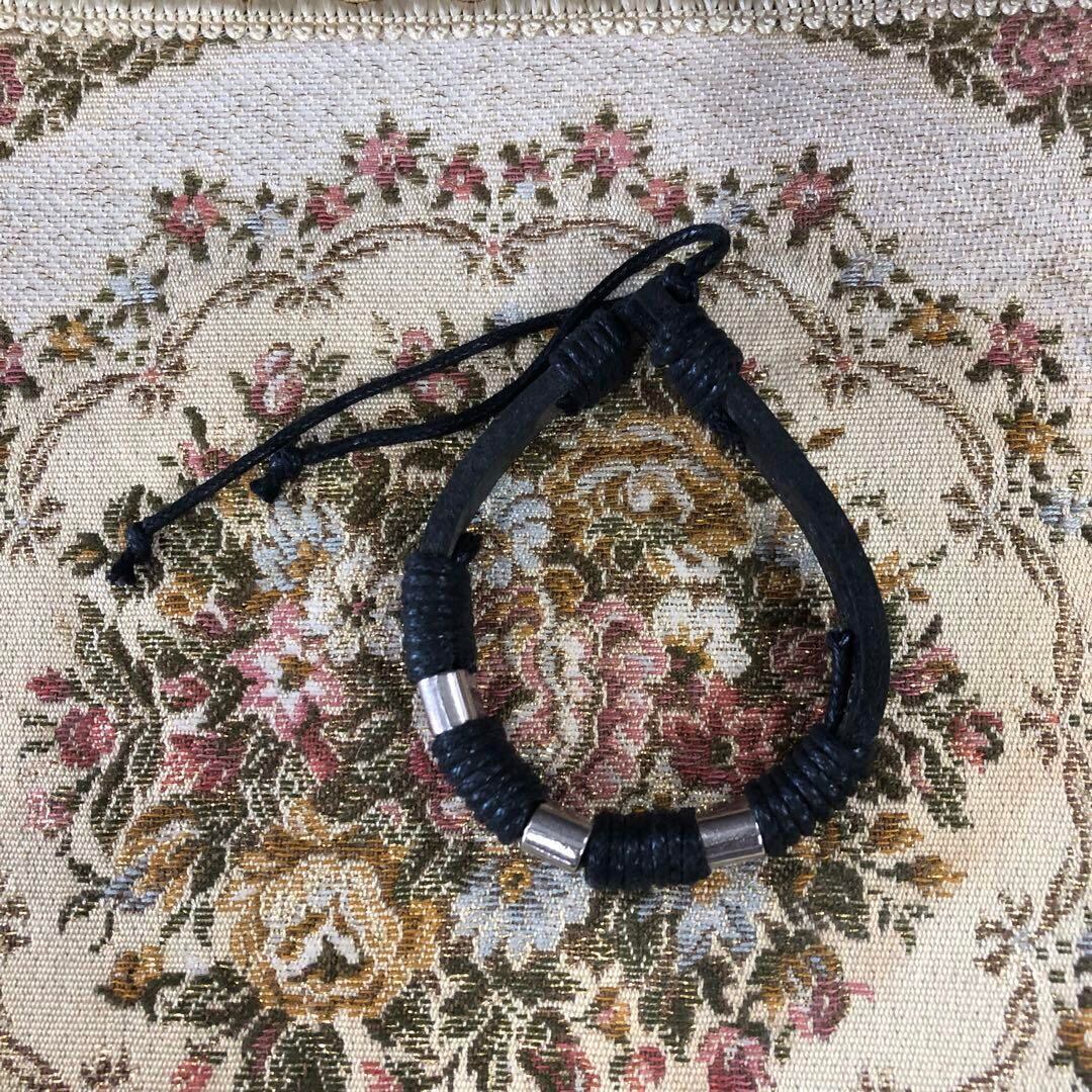 【新品未使用】ブラックレザー ブレスレット 男女兼用⑩