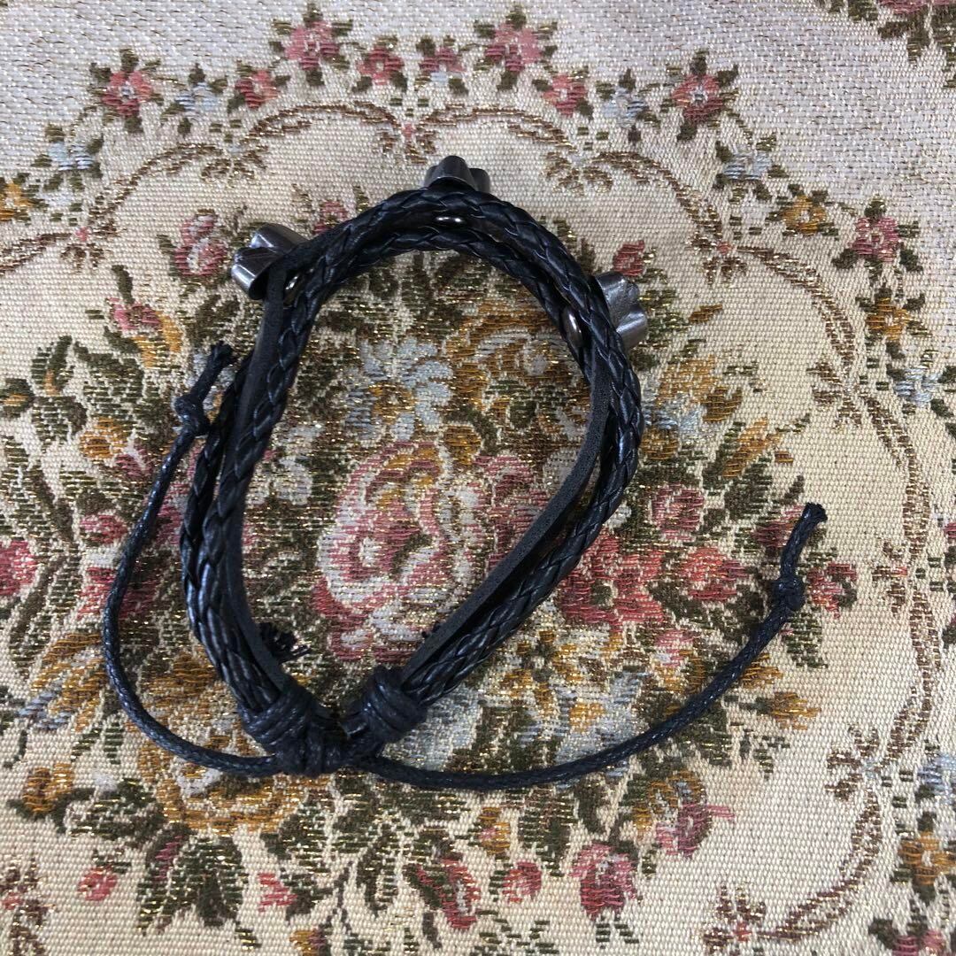 【新品未使用】ブラックレザー ブレスレット 男女兼用⑦