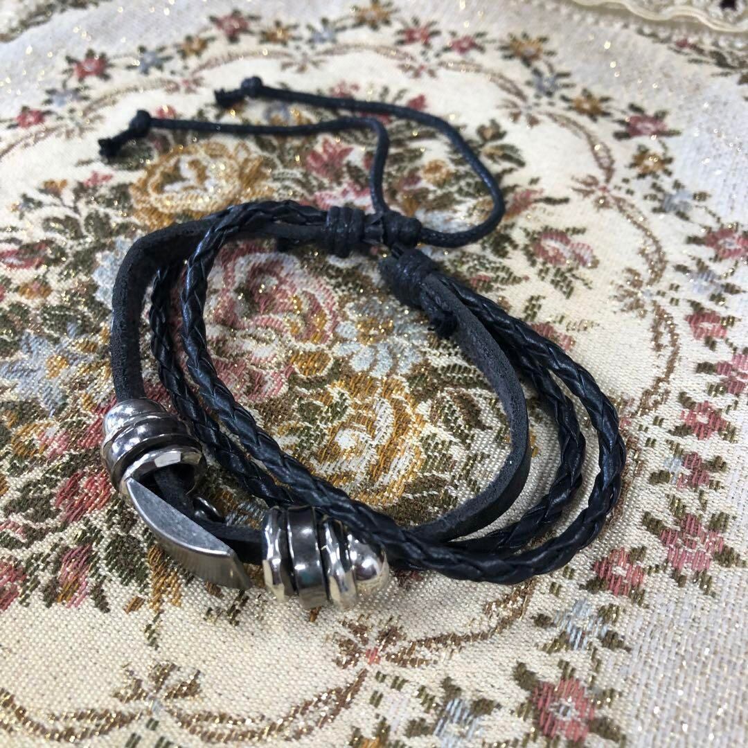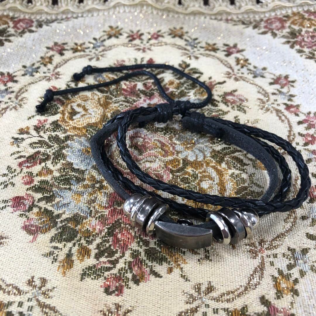 【新品未使用】ブラックレザー ブレスレット 男女兼用⑥