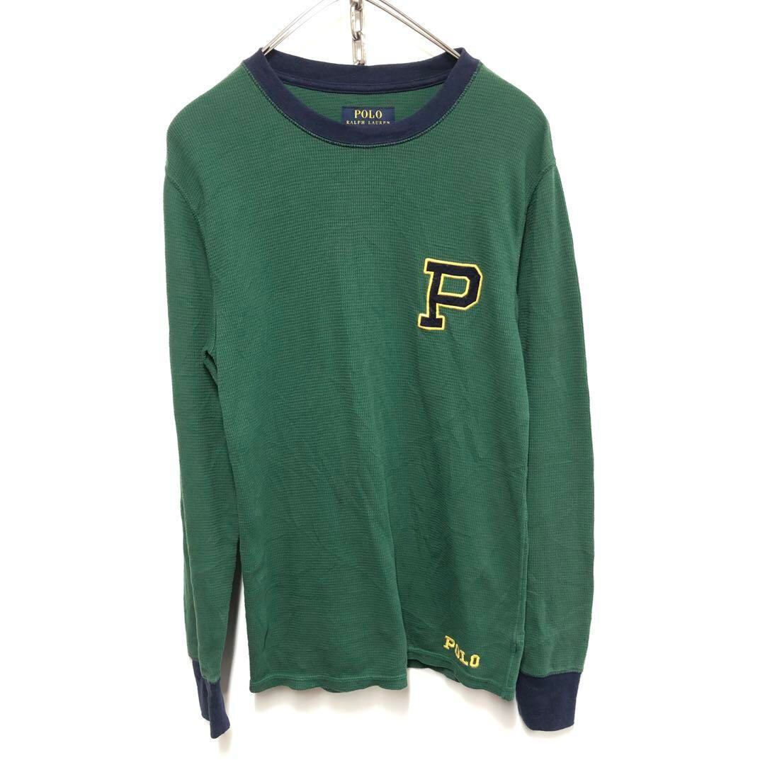 【美品】ポロラルフローレン リンガーネック ロンT 長袖 グリーン メンズS