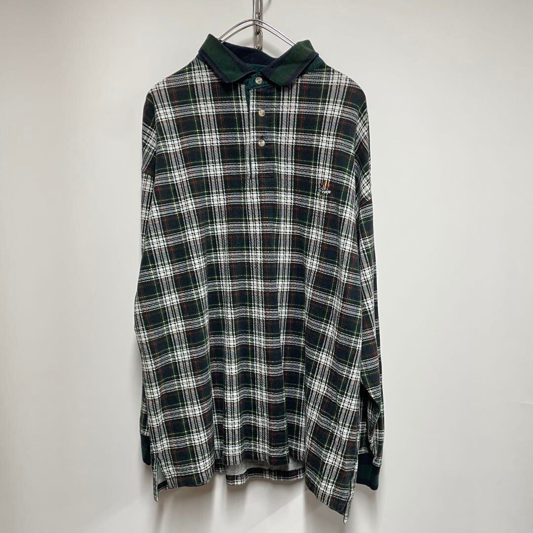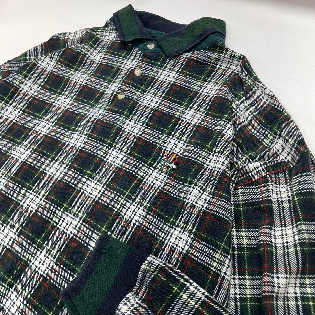 IVY CREW 長袖ポロシャツ チェック グリーン メンズL