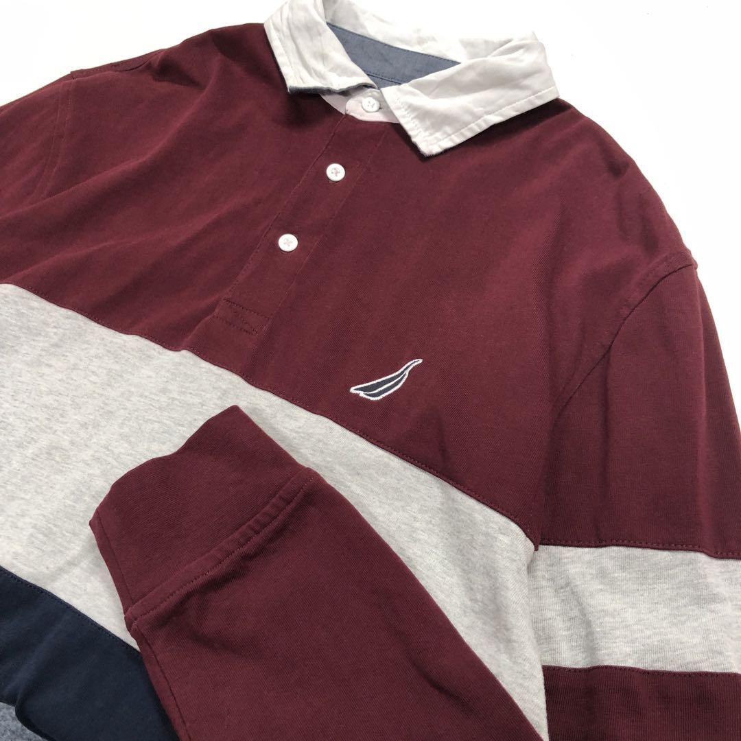 ノーティカ ラガーシャツ 長袖ポロシャツ ボルドー メンズM