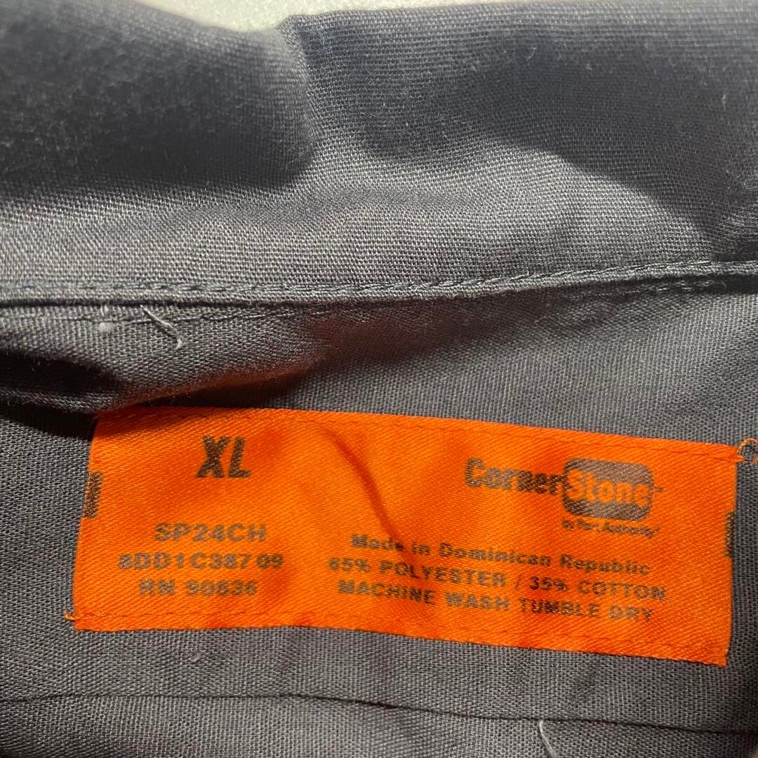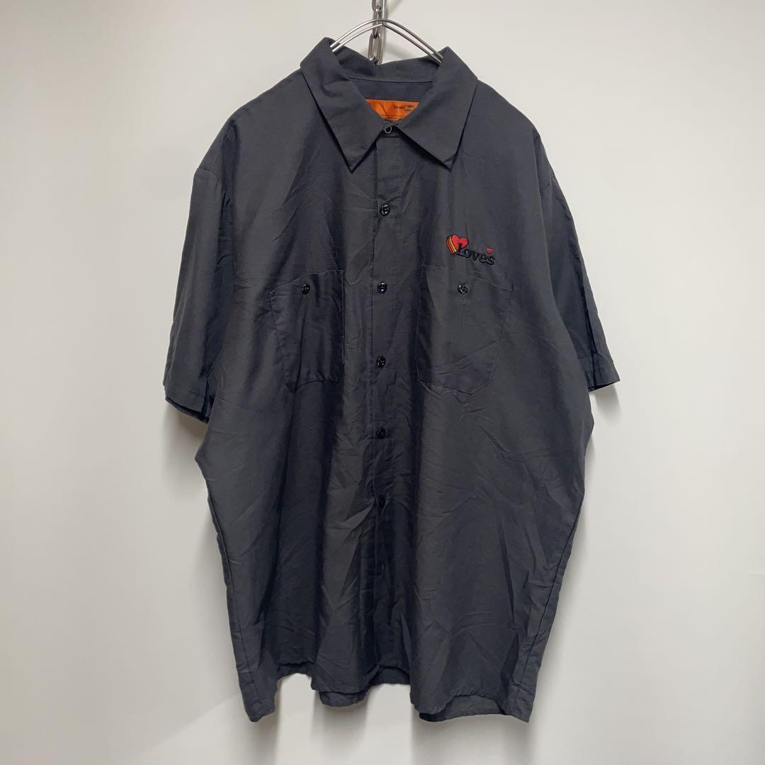 ワークシャツ ハートロゴ刺繍 半袖 ダークグレー メンズXL