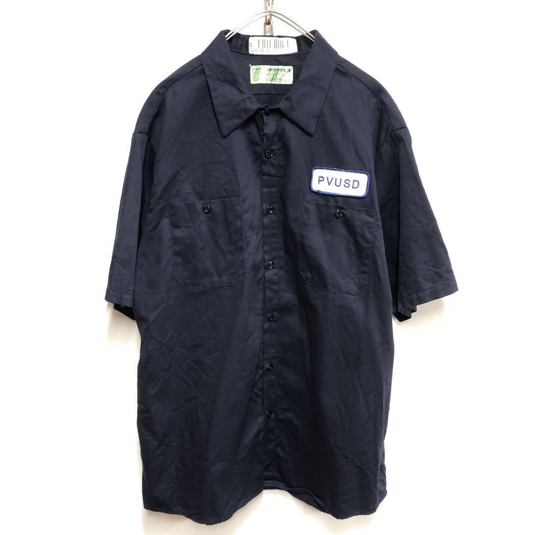 aramark ワークシャツ 半袖 ワッペン付 ネイビー メンズL