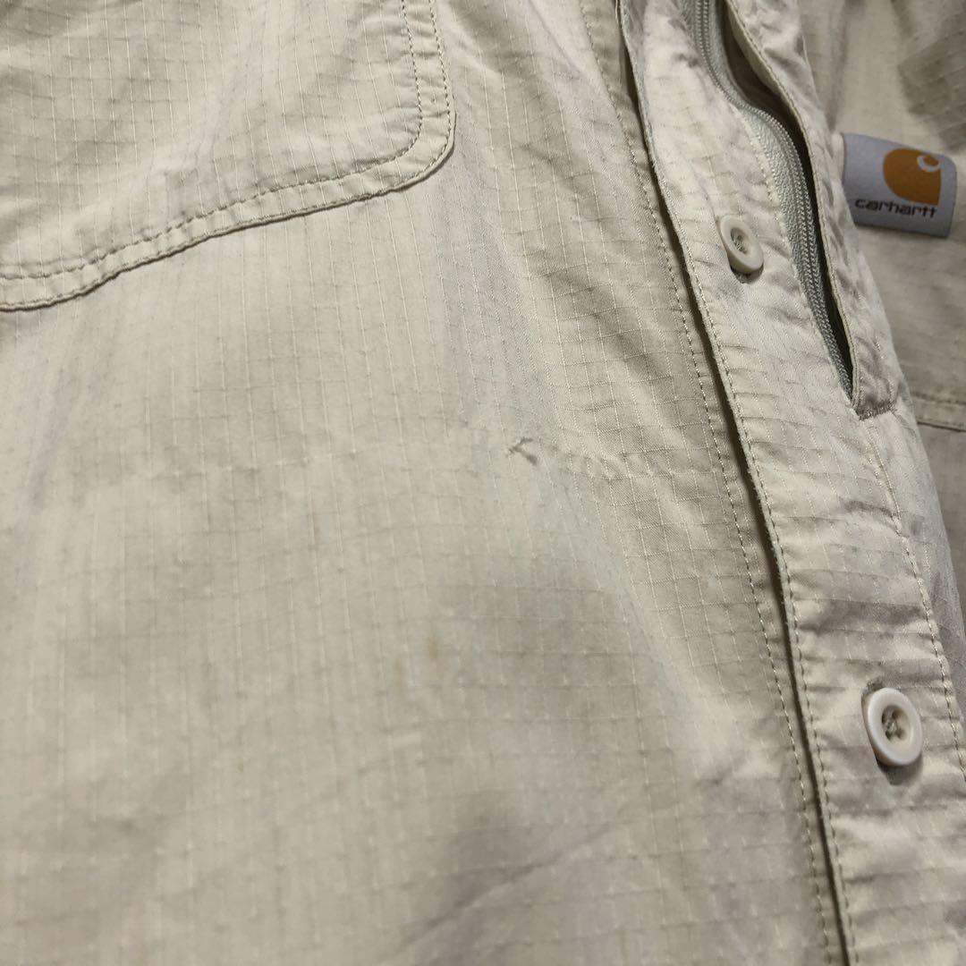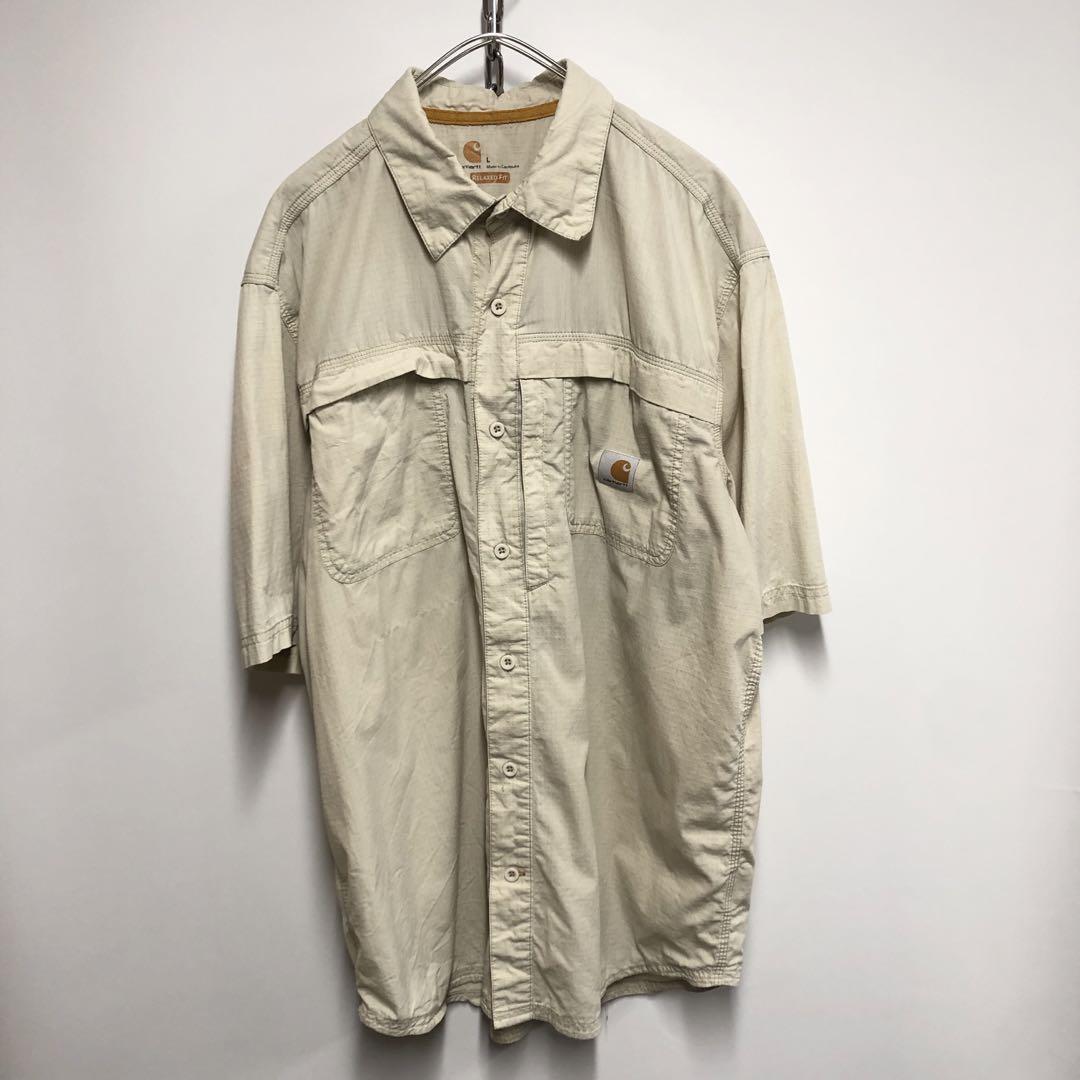 カーハート アウトドアシャツ キャンプ 半袖 クリーム メンズL