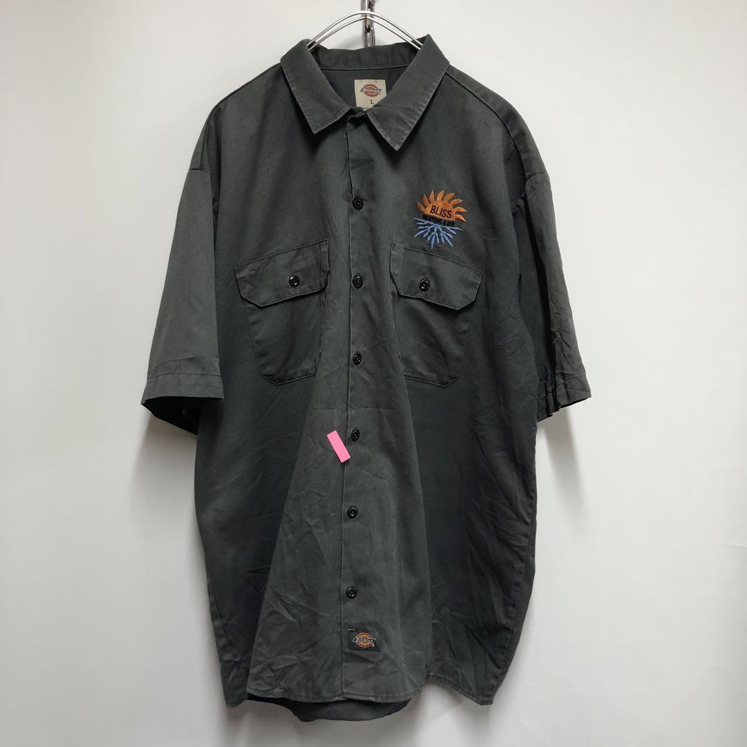 Dickies ワークシャツ 半袖 太陽ロゴ ダークグレー メンズL