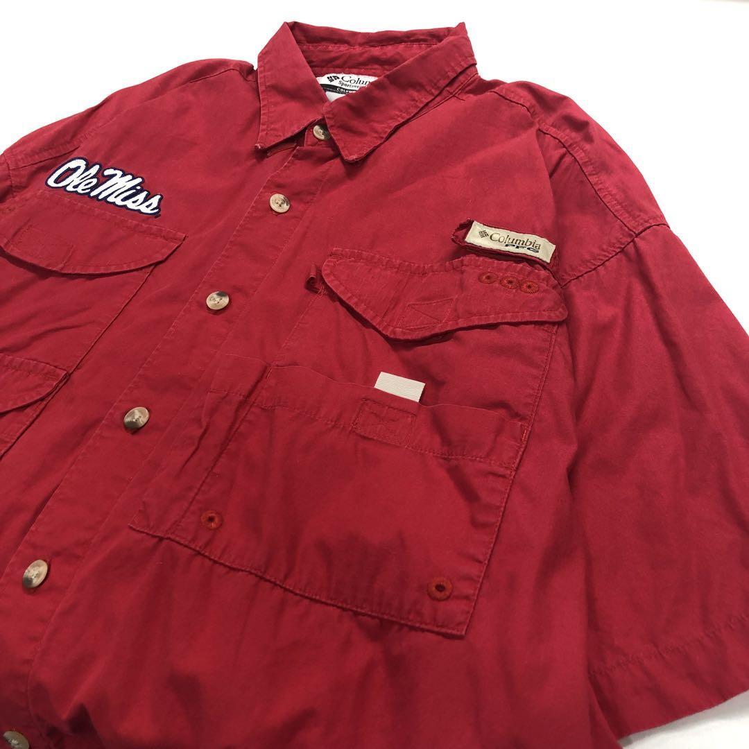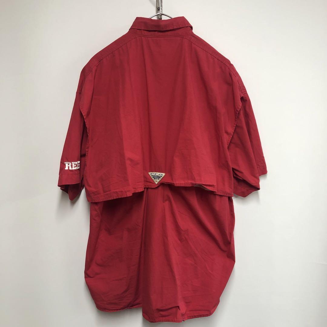 Columbia 半袖シャツ アウトドアシャツ レッド 刺繍ロゴ メンズS