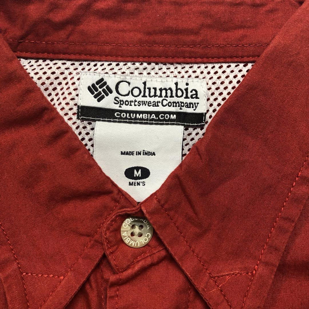 Columbia フィッシングシャツ 長袖シャツ レッド メンズM