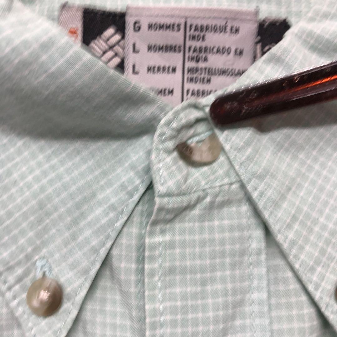 Columbia 半袖シャツ チェック柄 グリーン メンズL