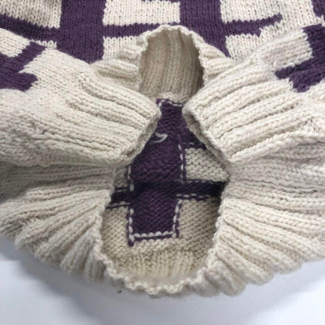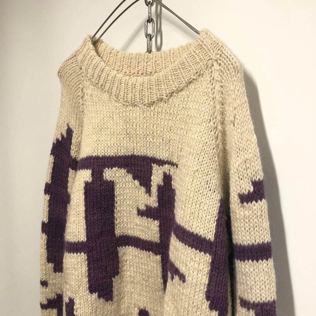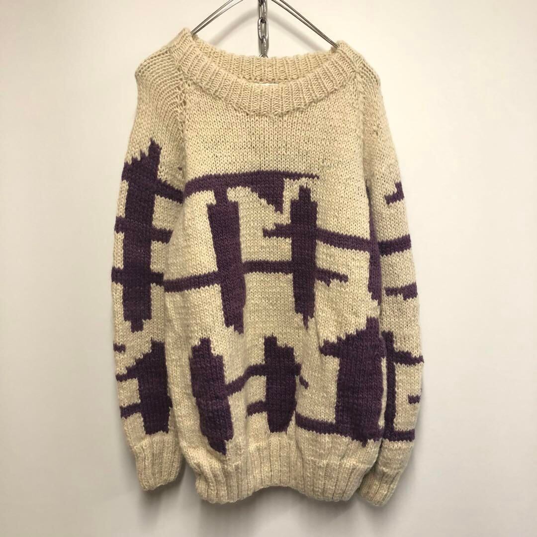 エクアドル製 ウール100% ニットセーター 総柄 クリーム メンズXL相当