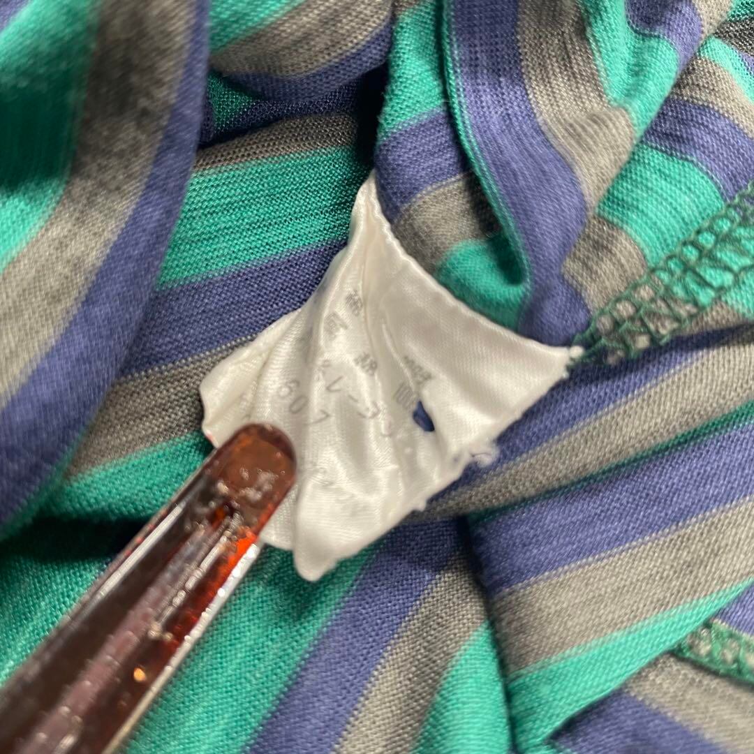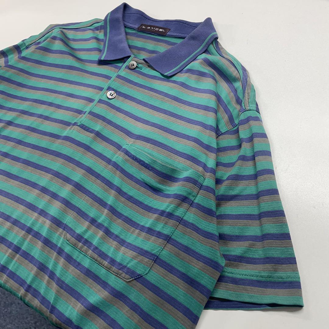 LANCEL ボーダー 半袖 ポロシャツ レーヨン グリーン メンズM