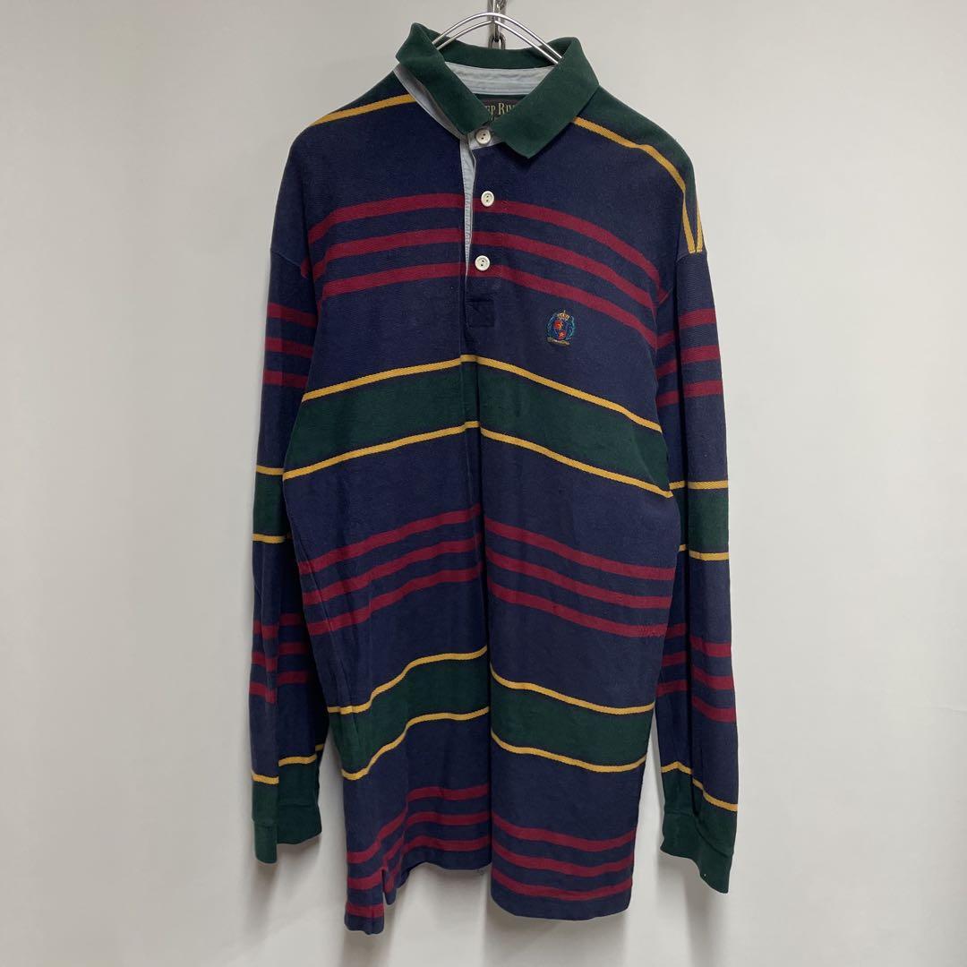 DEEP RIVER ラガーシャツ 長袖ポロシャツ ボーダー ネイビー メンズL
