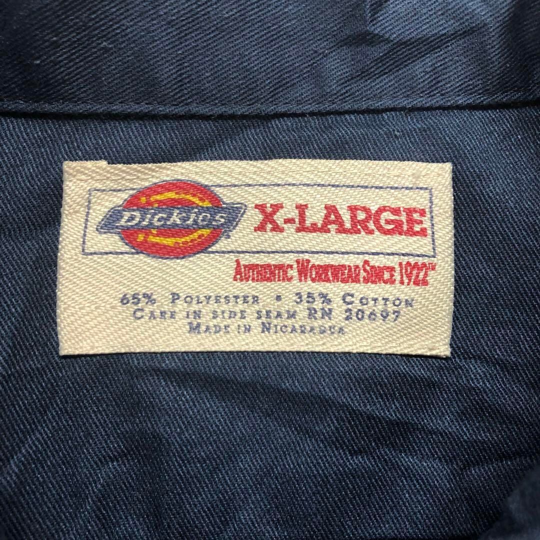 Dickies 90-00s 長袖 ワークシャツ ネイビー メンズXL