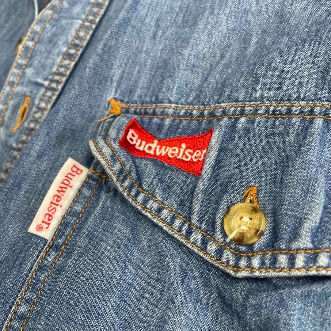 【Budweiser】ヴィンテージ デニムシャツ 刺繍ロゴ入り 長袖シャツ M