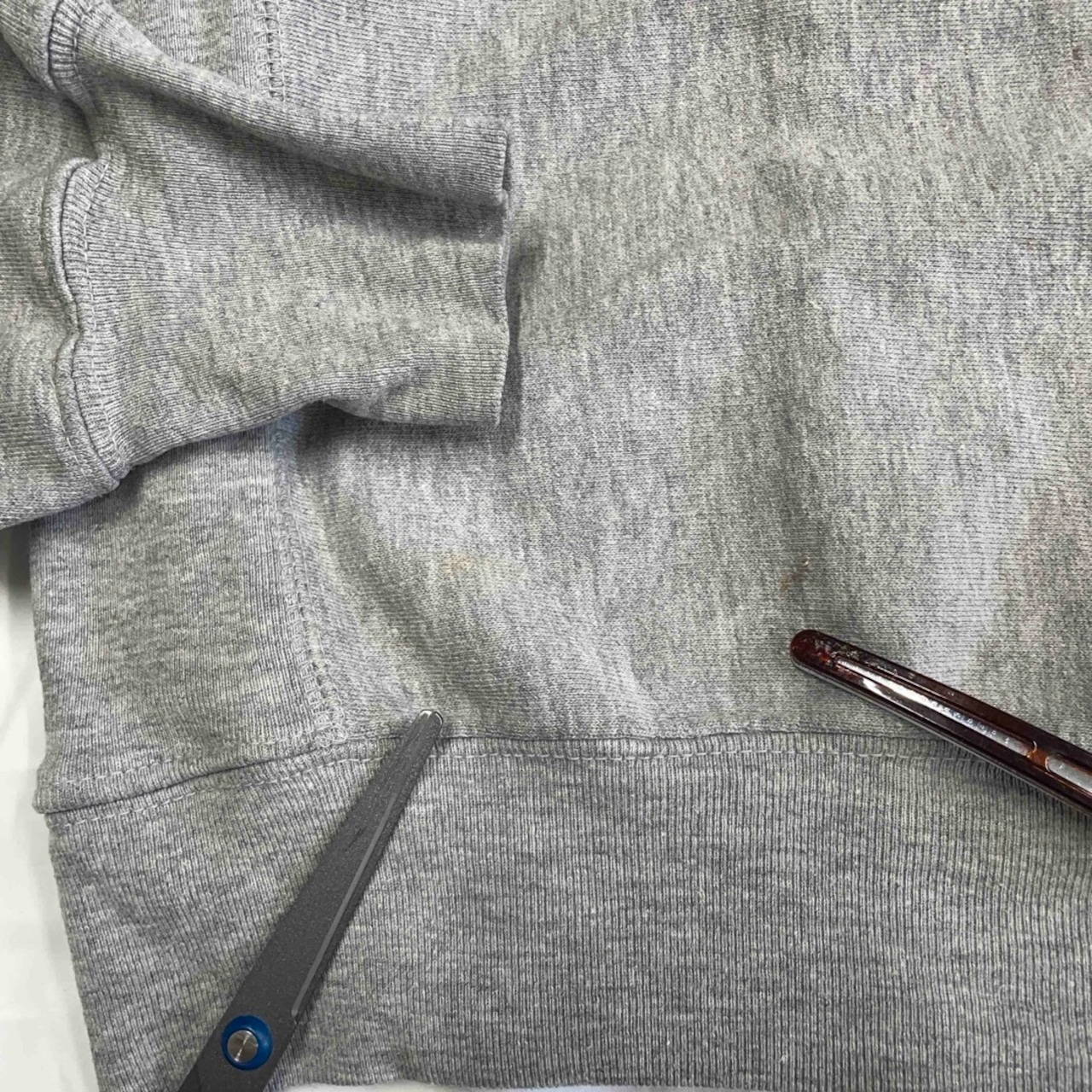 シンプルなグレーに赤×黒のロゴが映え、古着コーデやアメカジスタイルにぴったりです。