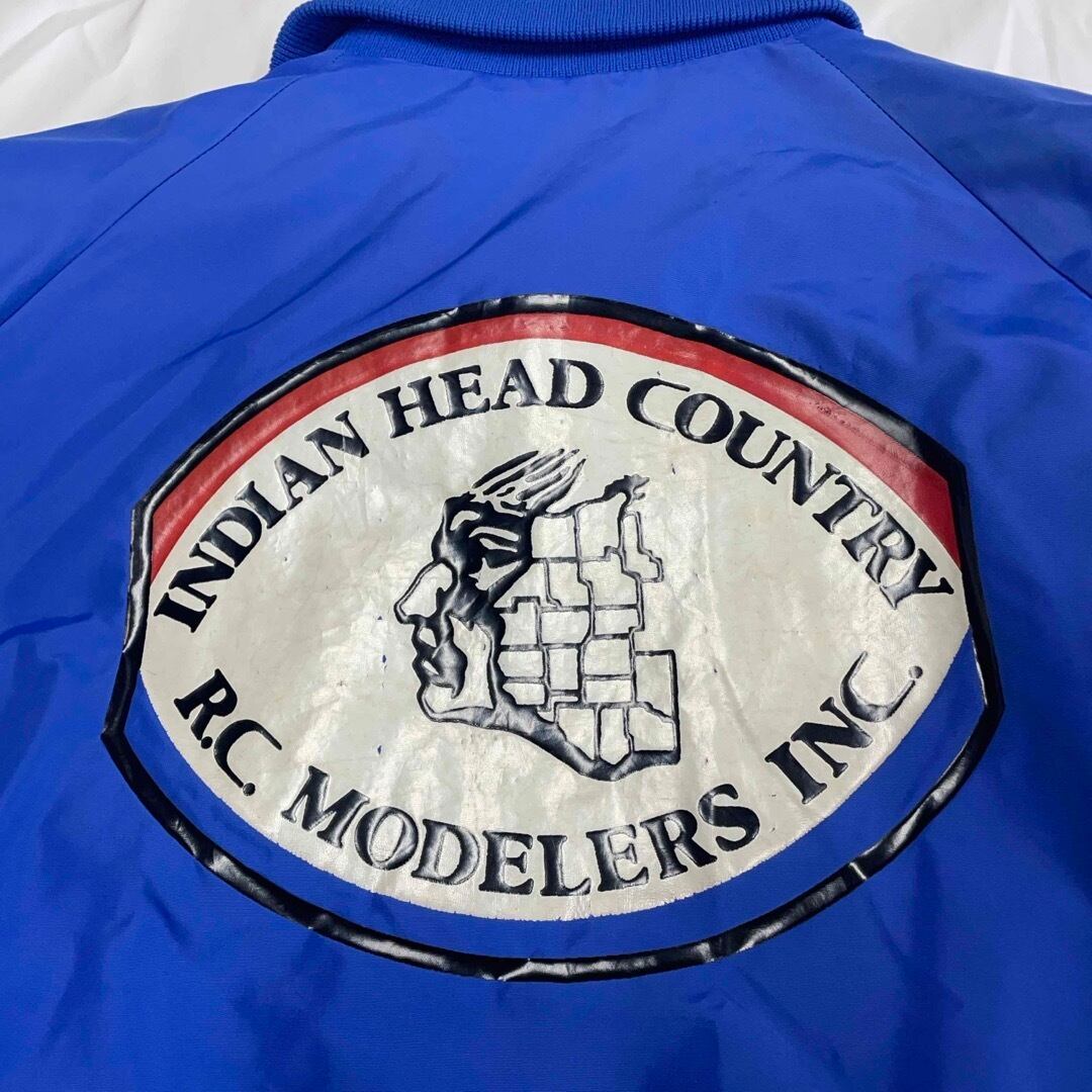 背面に大判プリント「INDIAN HEAD COUNTRY R.C. MODELERS INC.」が入る存在感抜群の1着。