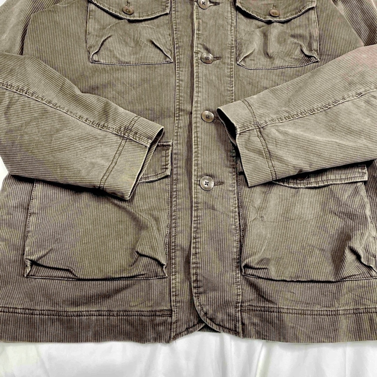 •袖に若干のスレ・色落ちがありますが、全体的に目立つダメージはなく良好なコンディションです。