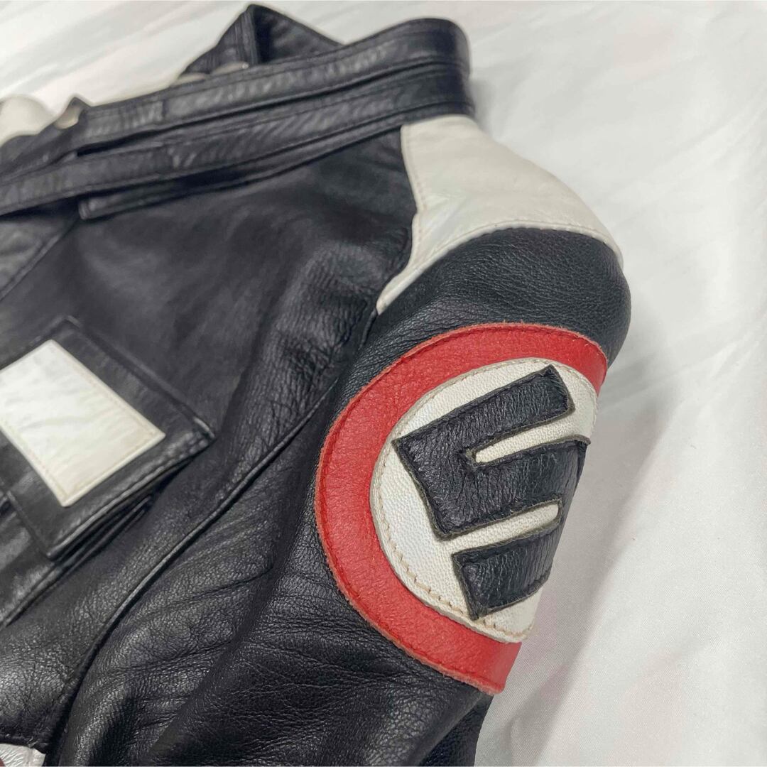 (袖やホワイト部分に汚れあり。レザー特有の使用感ありですが、まだまだ着用可能です。)